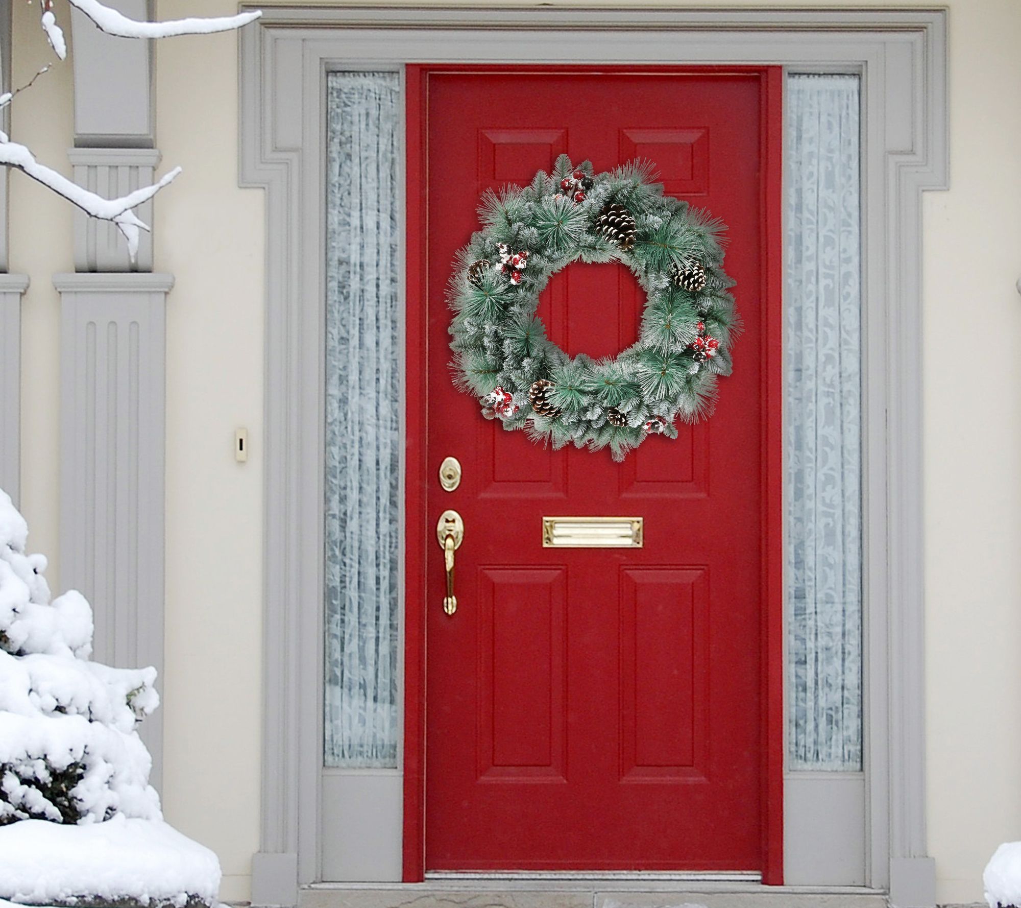 Puleo 24" Glitter Needle Mixed Christmas Wreath, Green
