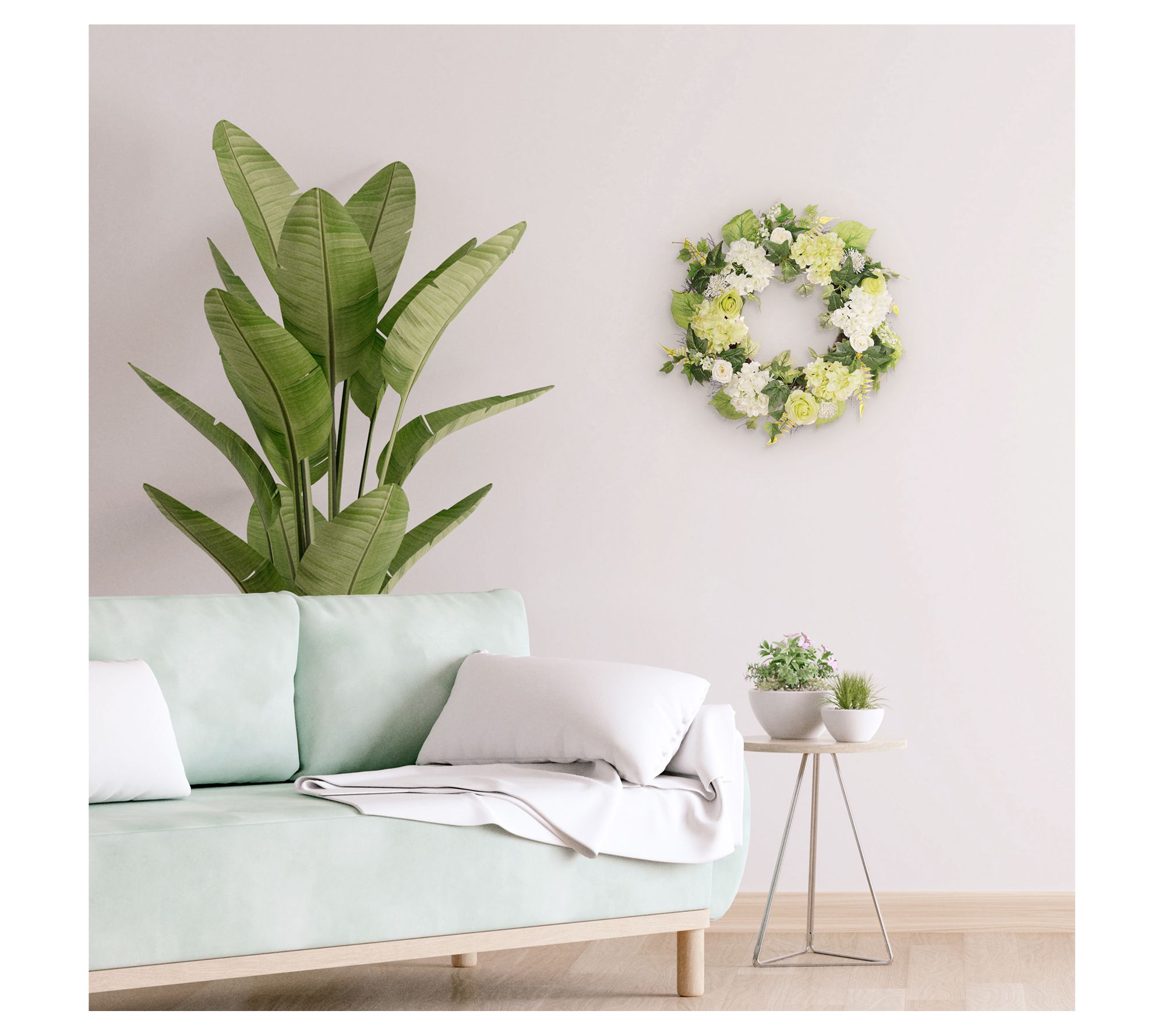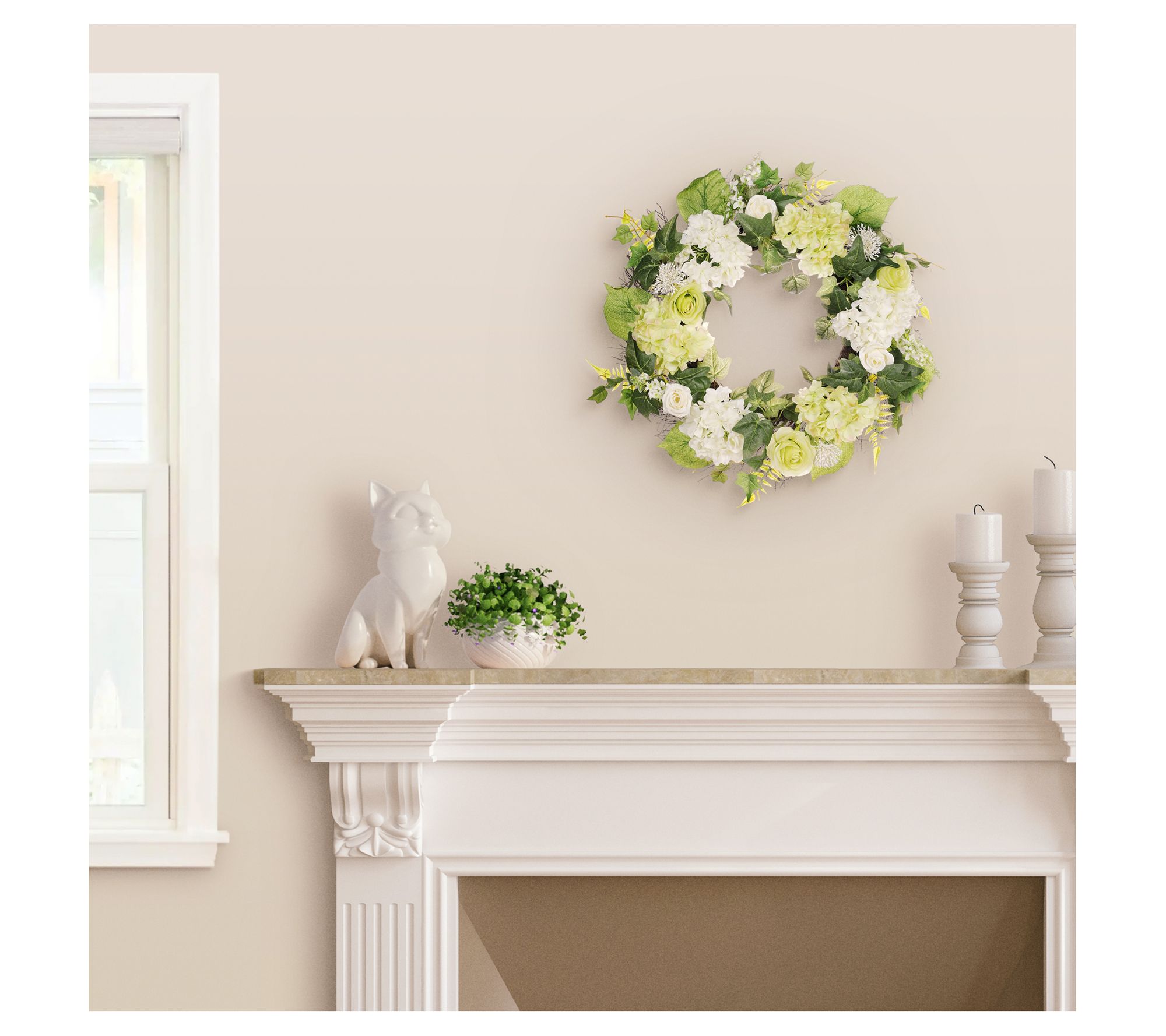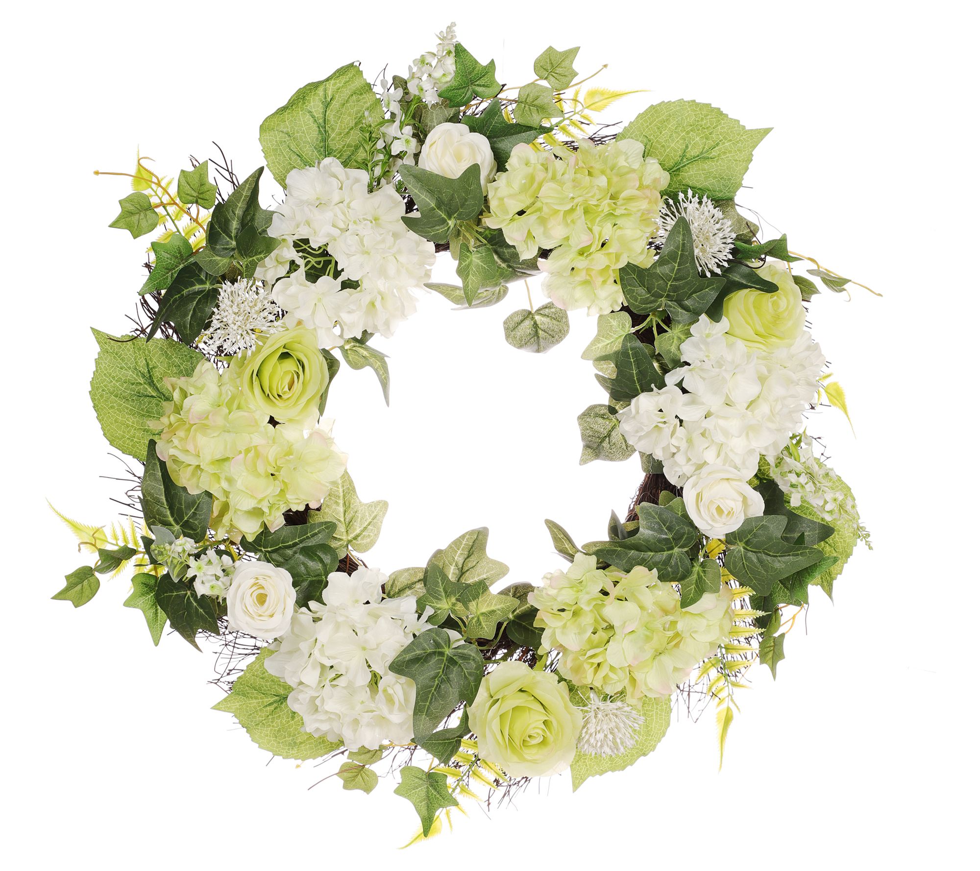 Puleo 24" Hygrangea,Rose Floral Spring Wreath W ith Green