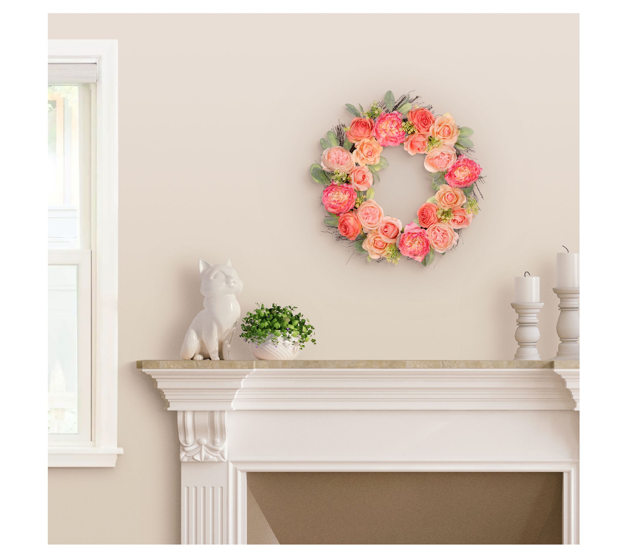 Puleo 24" Peony,Rose Floral Spring Wreath With Green Leav