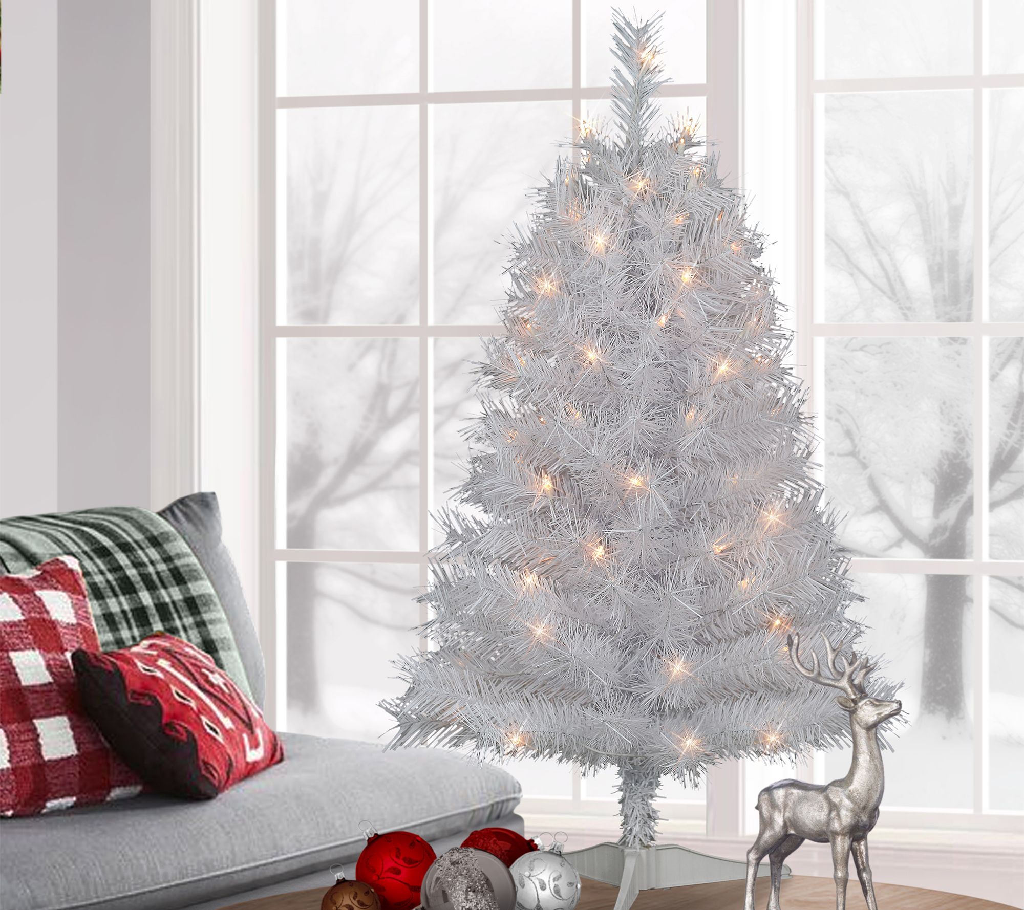 Fill your small spaces with the festive glow and nature-inspired beauty of this artificial Snow Ridge Fir tree. Topped with 70 clear lights and made for easy assembly, it's a quick way to bring holiday charm into any room of your home. From Puleo International.