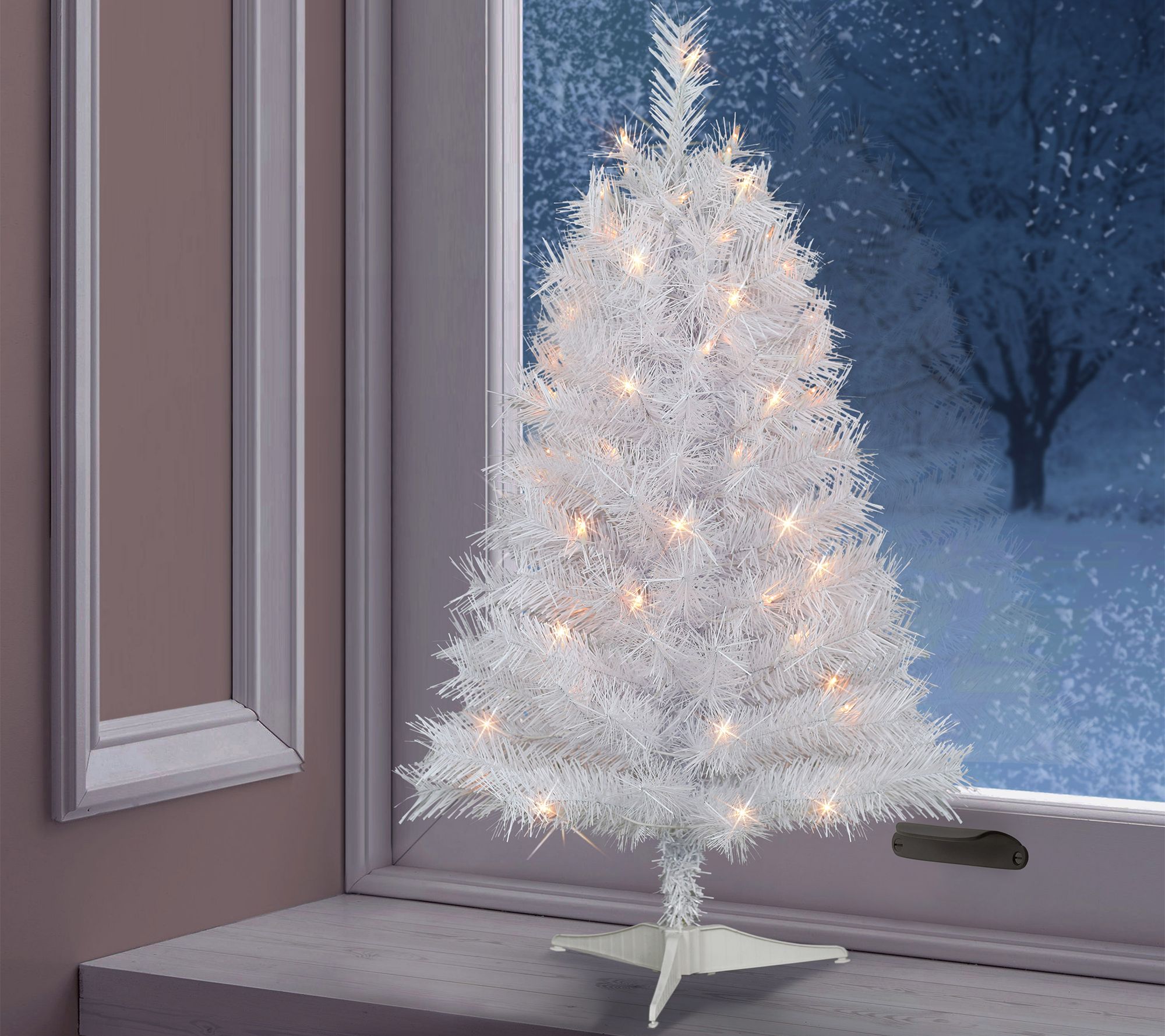 Puleo 3' Pre-Lit White Snow Ridge Artificial Fir Tree