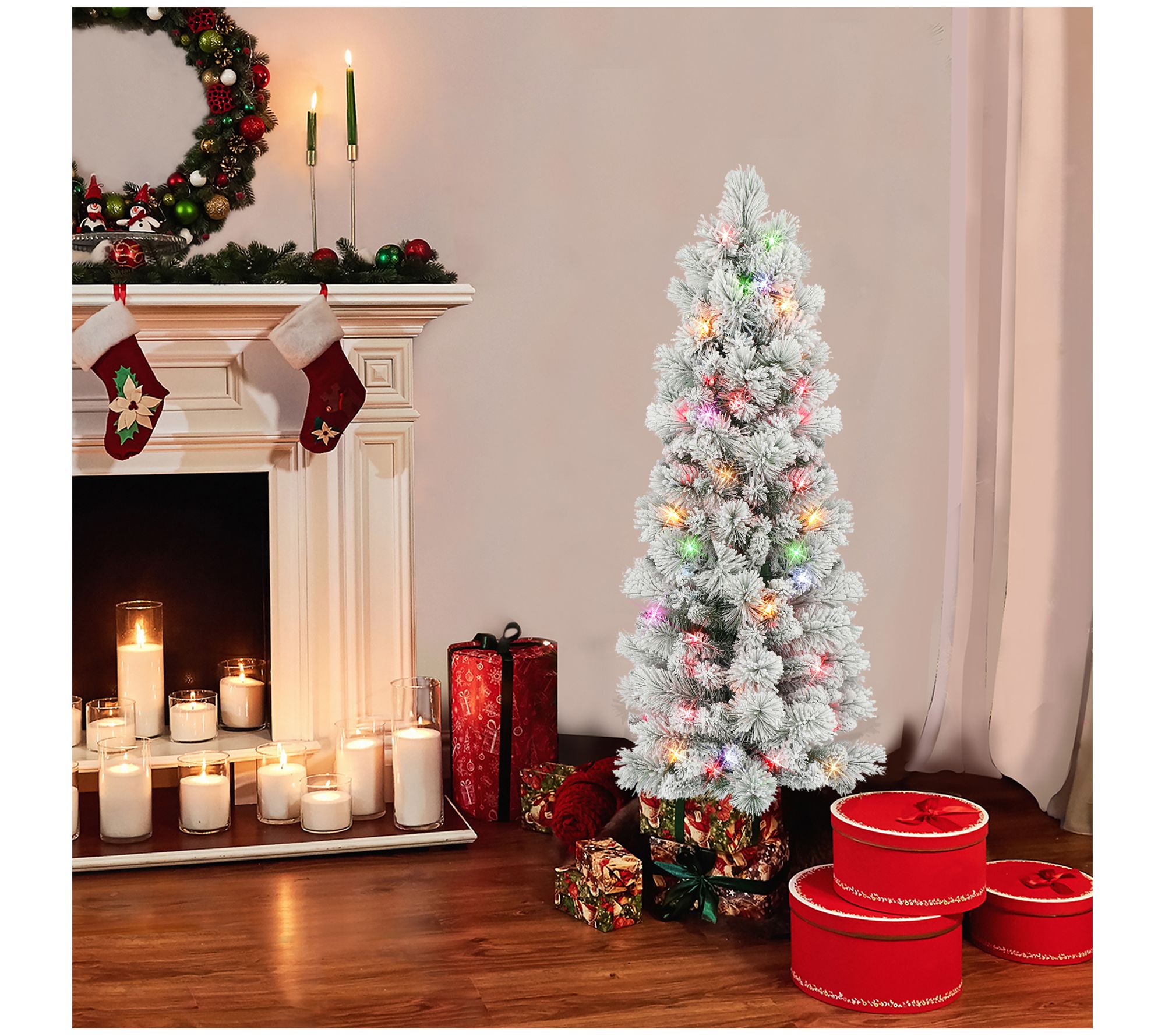 Puleo 4.5' Flocked Portland Pine Pencil Tree with 195 tips