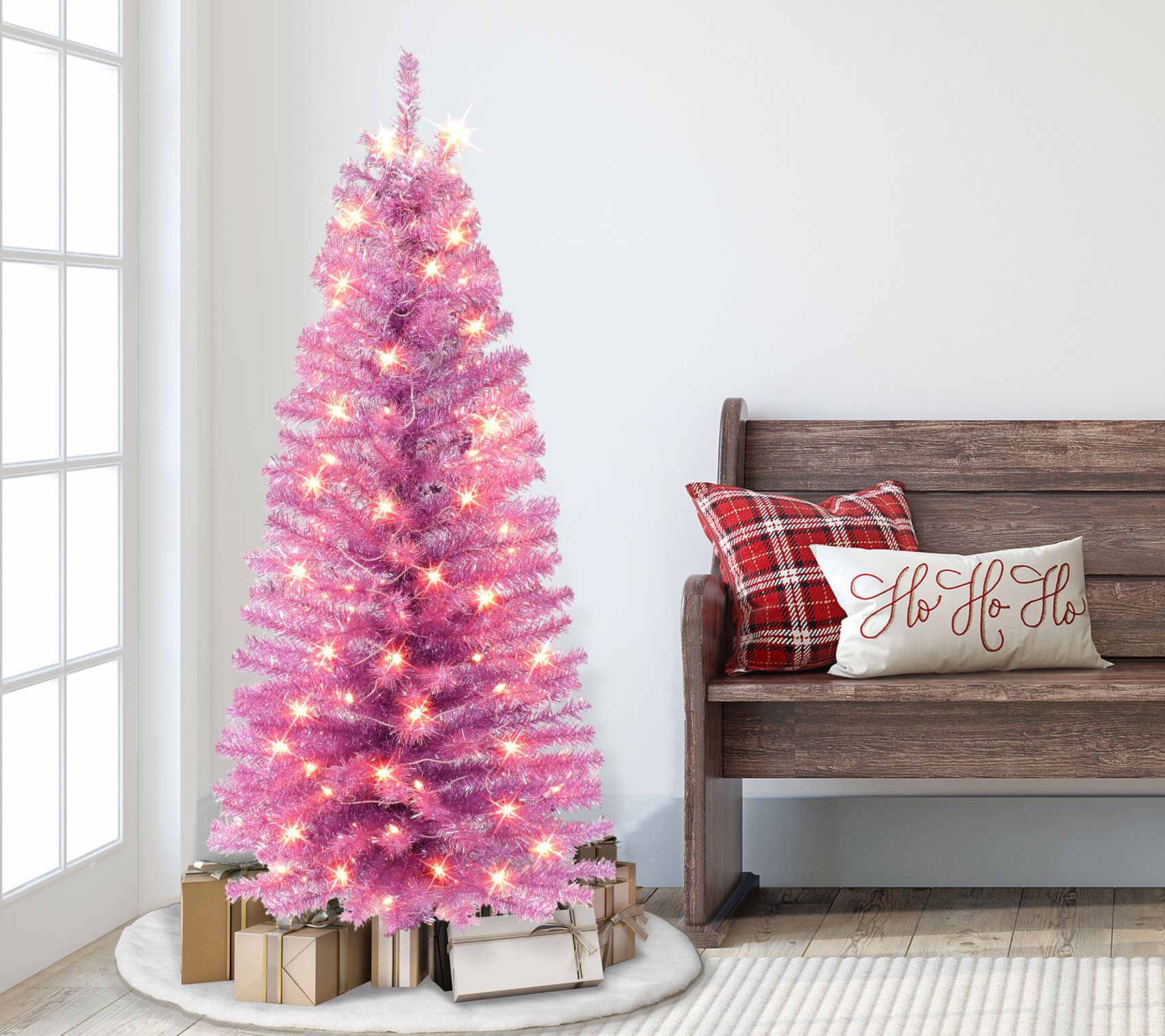 Save time while prepping your home for the holidays by setting up this cheerful pastel tree pre-decorated with festive lights. From Puleo International.