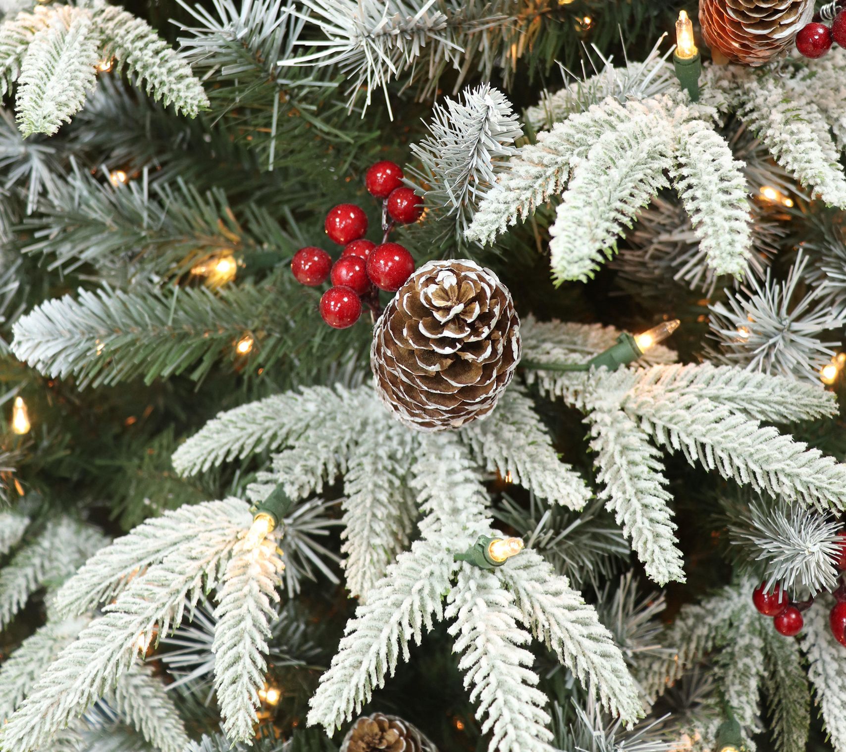 Your dreams of a white Christmas have come true with this snow-flocked tree. Ensure that your days are merry and bright with this lifelike tree that comes pre-strung with a bevy of lights and an attractive potted base. It sets up in a snap and all you need to add are your favorite decorations. From Puleo International.