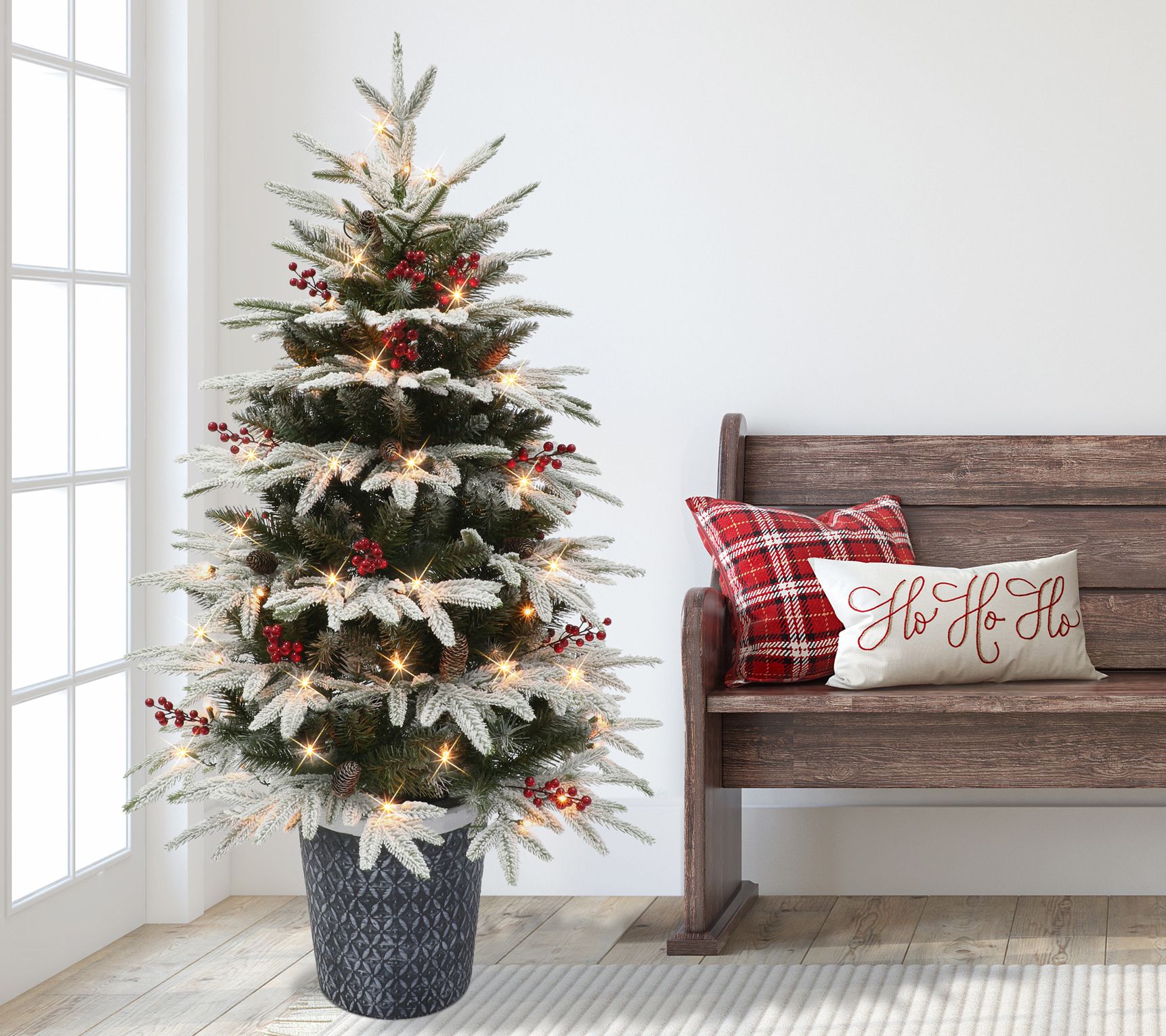 Puleo 4.5' Pre-lit Potted Flocked Halifax Fir Tree