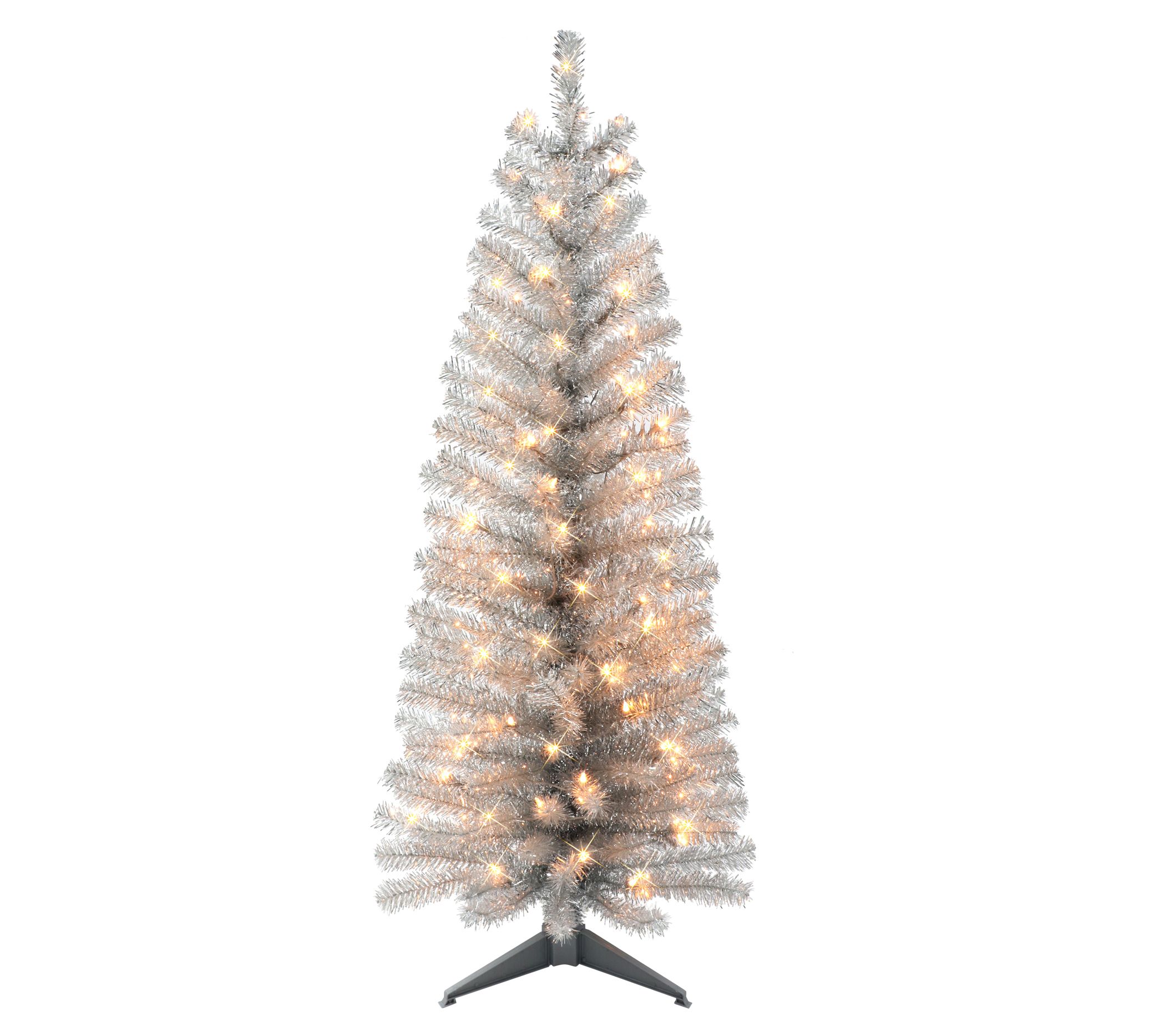 Puleo 4.5' Pre-Lit Silver Tinsel Tree