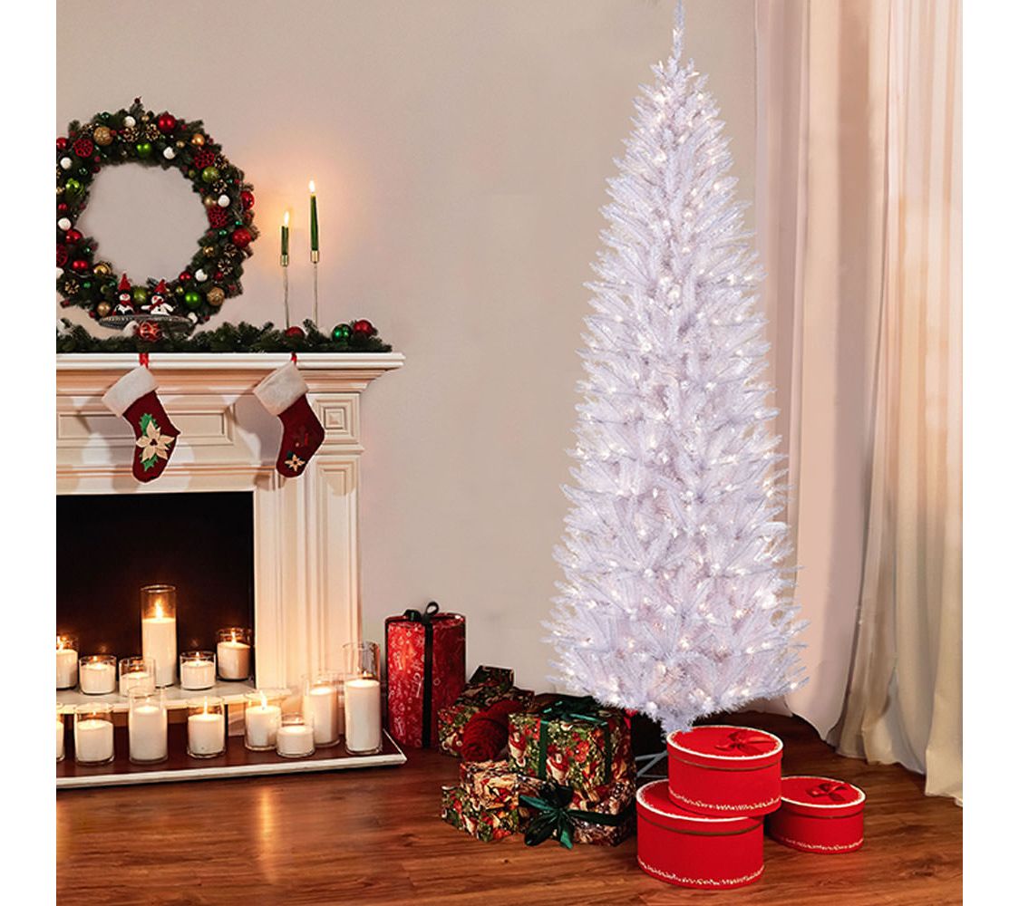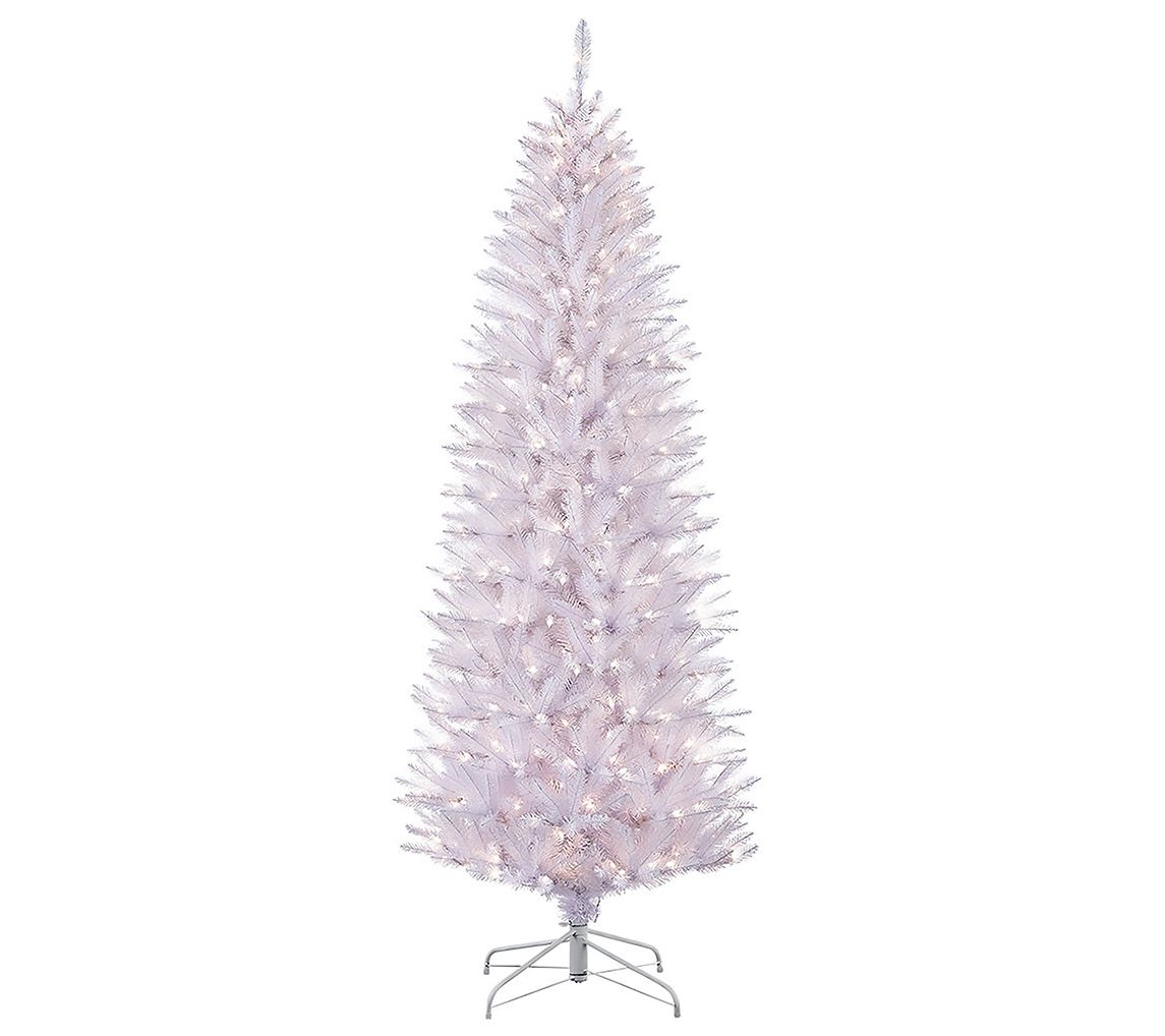 Create a winter wonderland, even in tight spaces, with this gorgeous white Fraser fir Christmas tree. Its slim silhouette features 401 branch tips and 150 clear bulbs to fill your home with a touch of winter magic. From Puleo.
