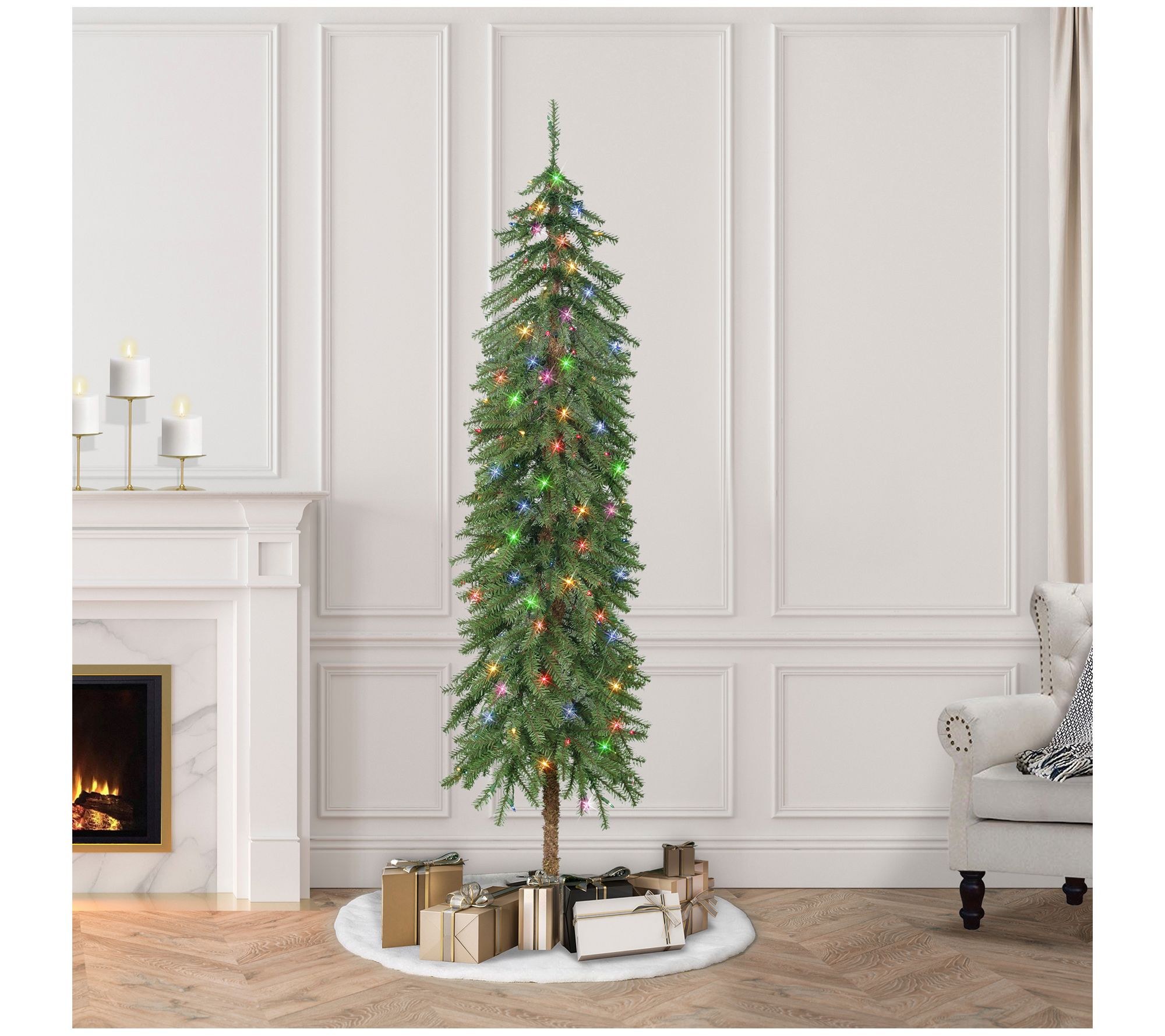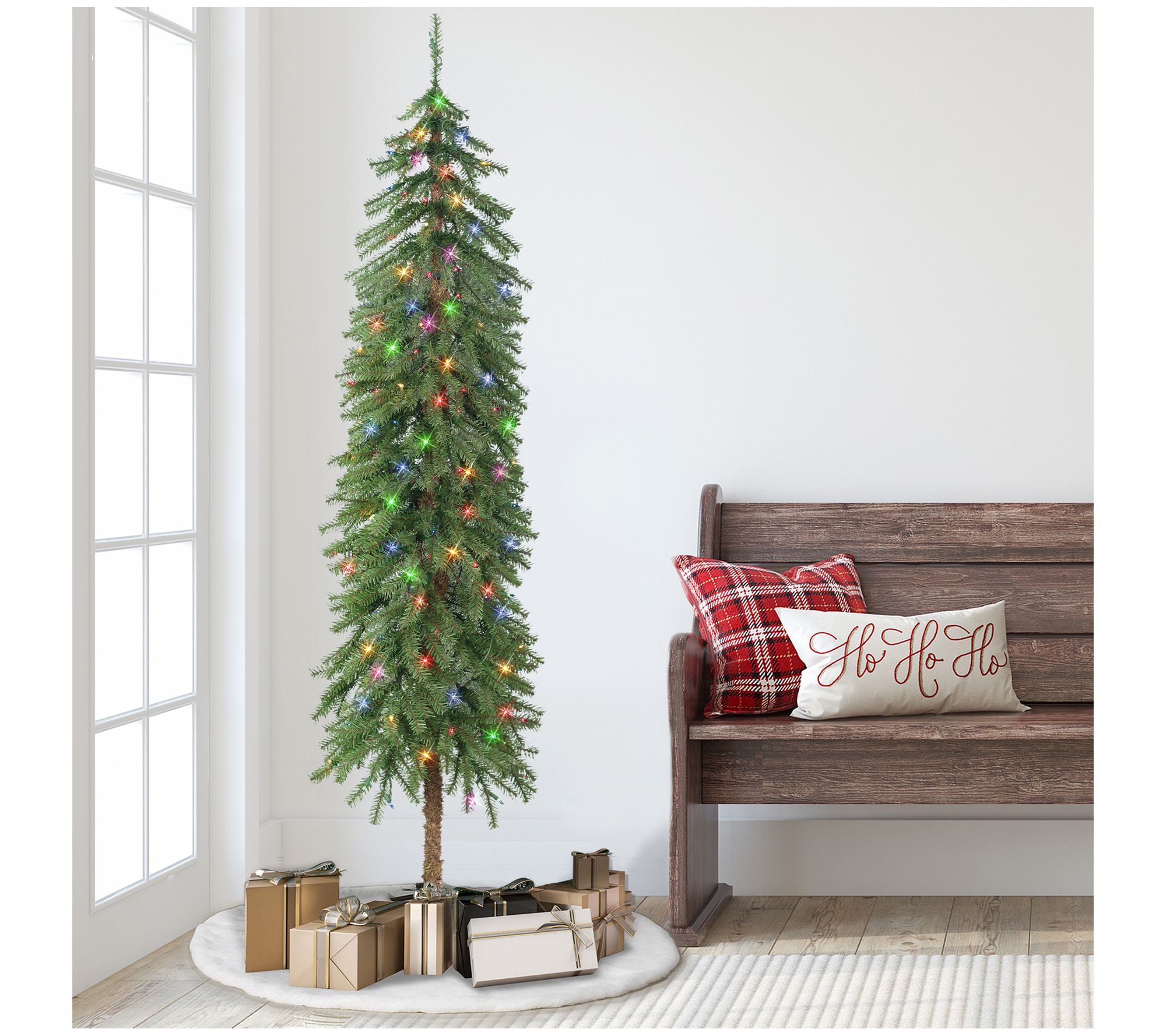 Dress up any corner of your home with the eye-catching elegance of this artificial Alpine tree. Pre-lit with incandescent lights, it boasts a slender profile to fit into nearly any space. From Puleo International.