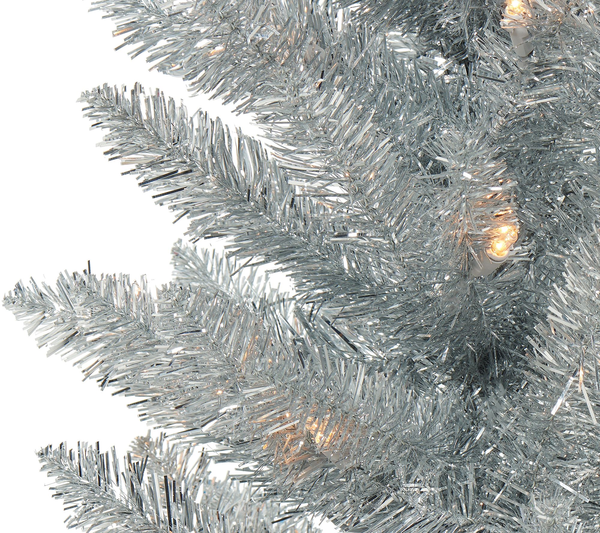Puleo 6' Pre-lit Silver Tinsel Pencil Tree