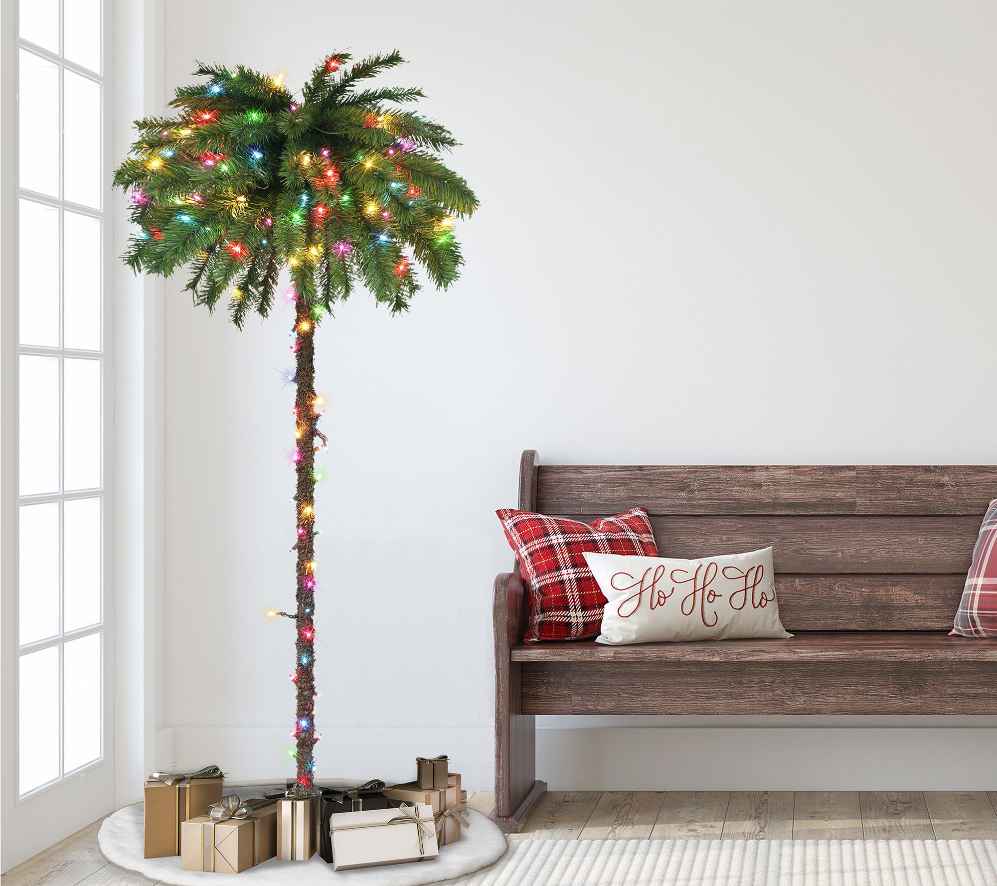 Give your winter holidays a tropical twist with this fun artificial palm tree, featuring lush lifelike fronds and lively multicolored lights. From Puleo International.