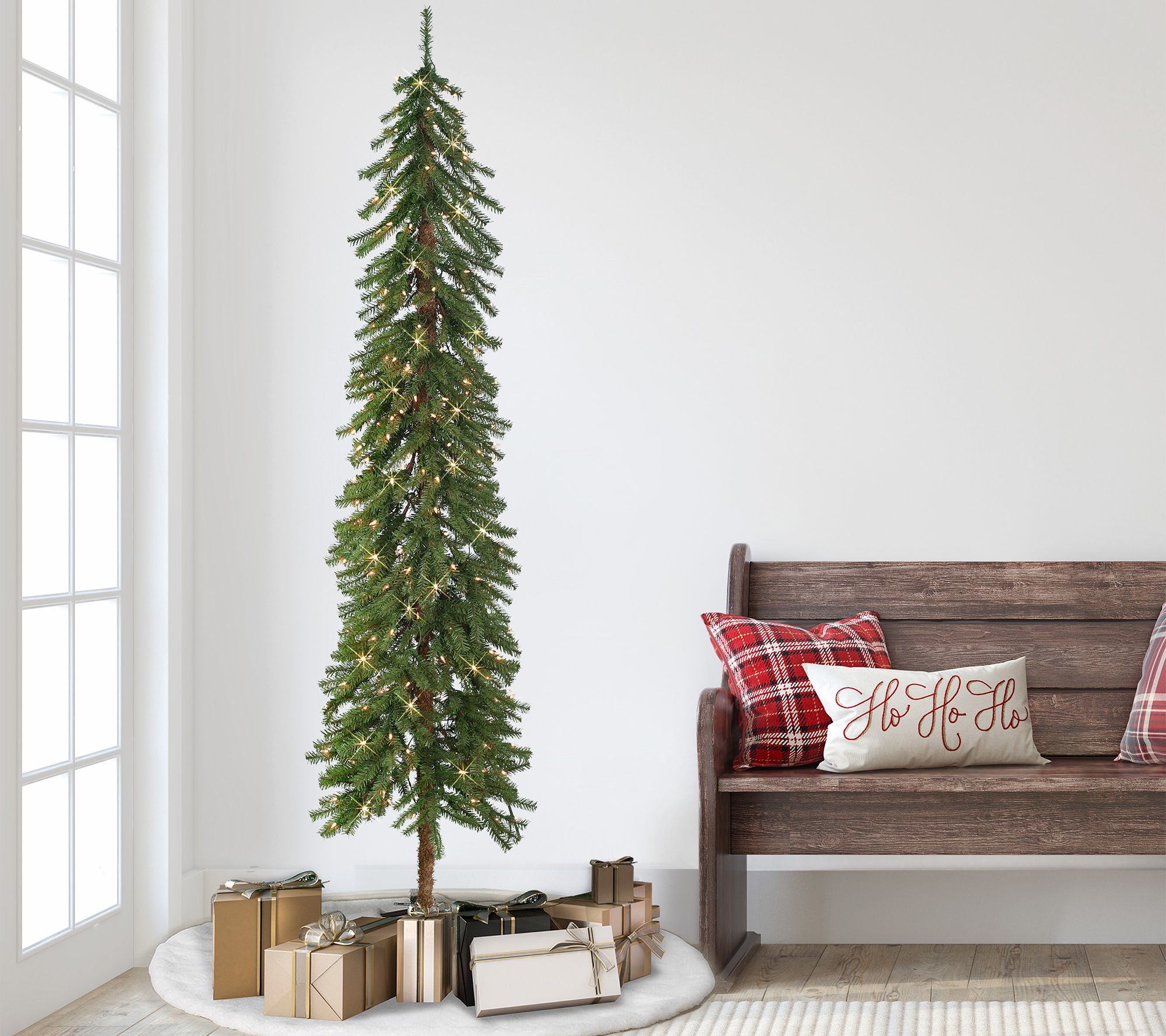 Dress up any corner of your home with the eye-catching elegance of this artificial Alpine tree. Pre-lit with incandescent lights, it boasts a slender profile to fit into nearly any space. From Puleo International.