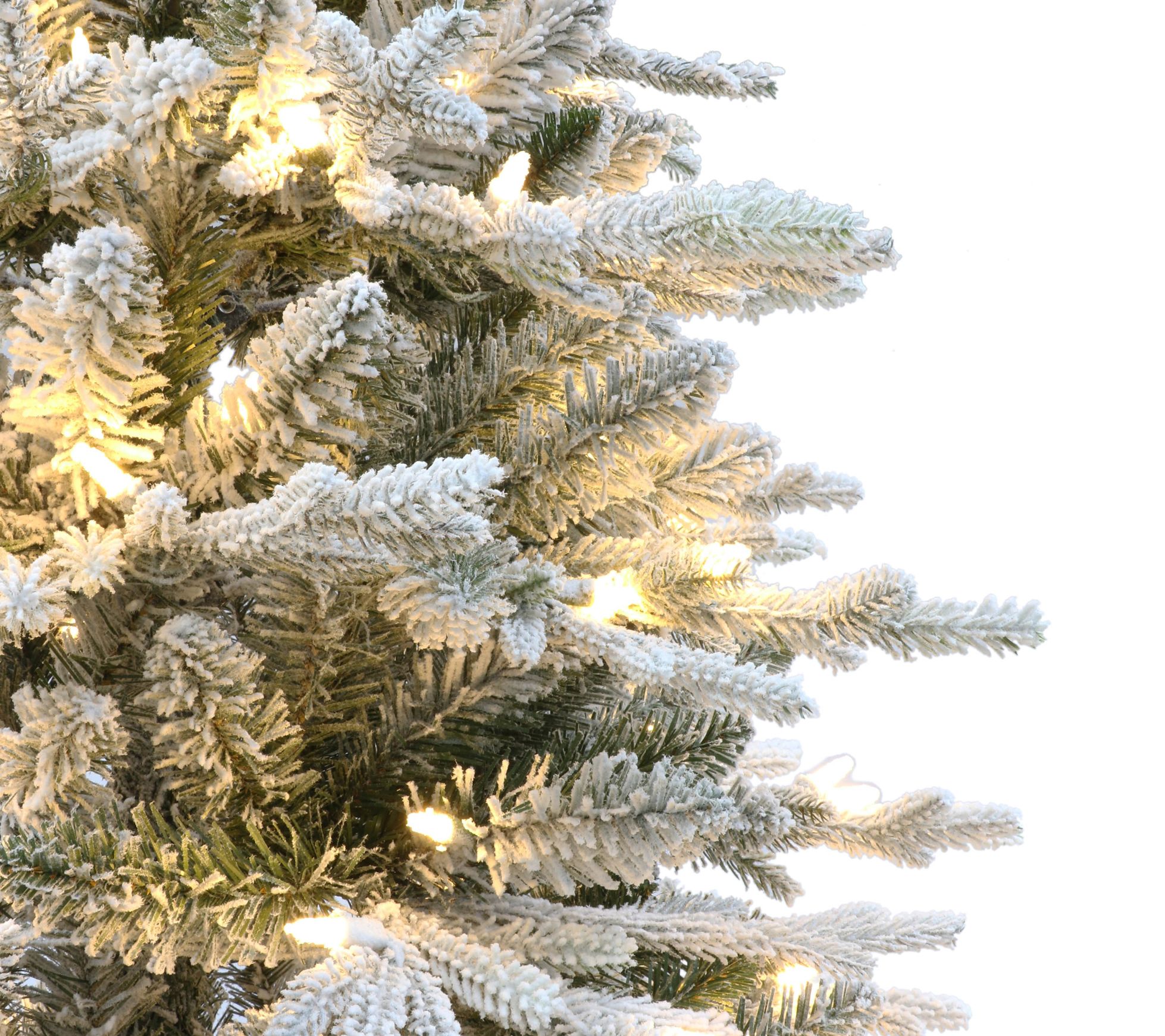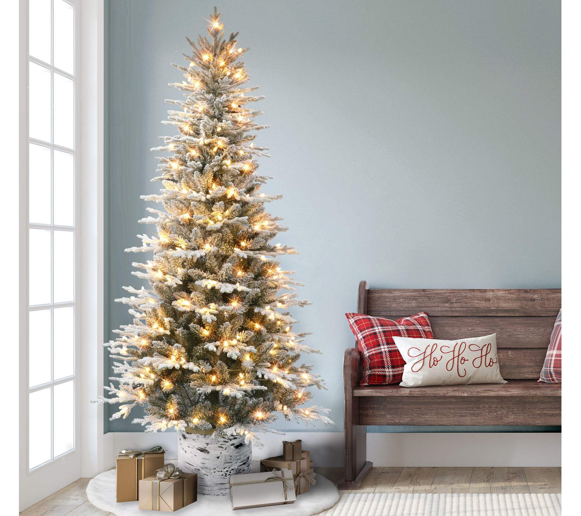 Puleo 7.5 ft Pre-lit Potted Flocked Arctic Fir Tree, 250