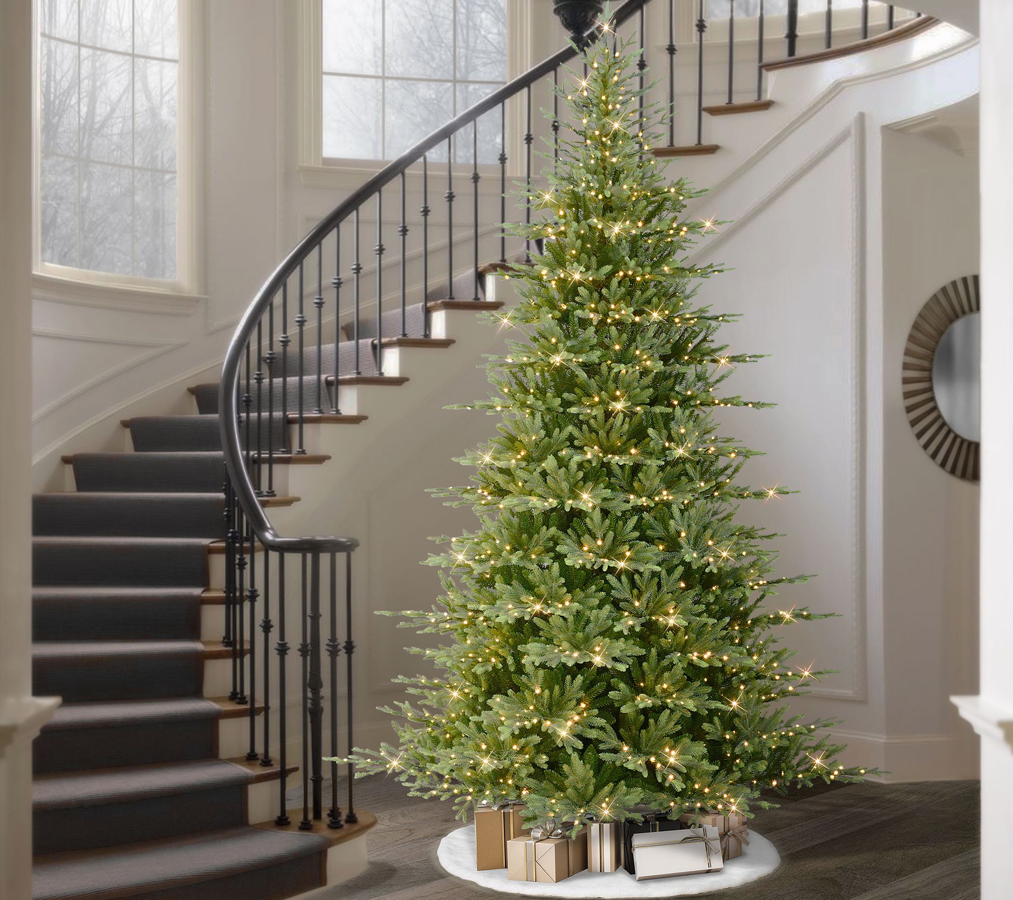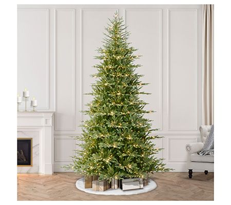Transform your holiday space with this pre-lit Alberta Spruce artificial Christmas tree, featuring 1,200 multi-function LED Lights. This stunning artificial Christmas tree brings the magic of the holidays to your home with nine different light functions, easily controlled by a foot pedal switch. Its easy assembly and durable design make it a festive centerpiece for seasons to come. From Puleo International.