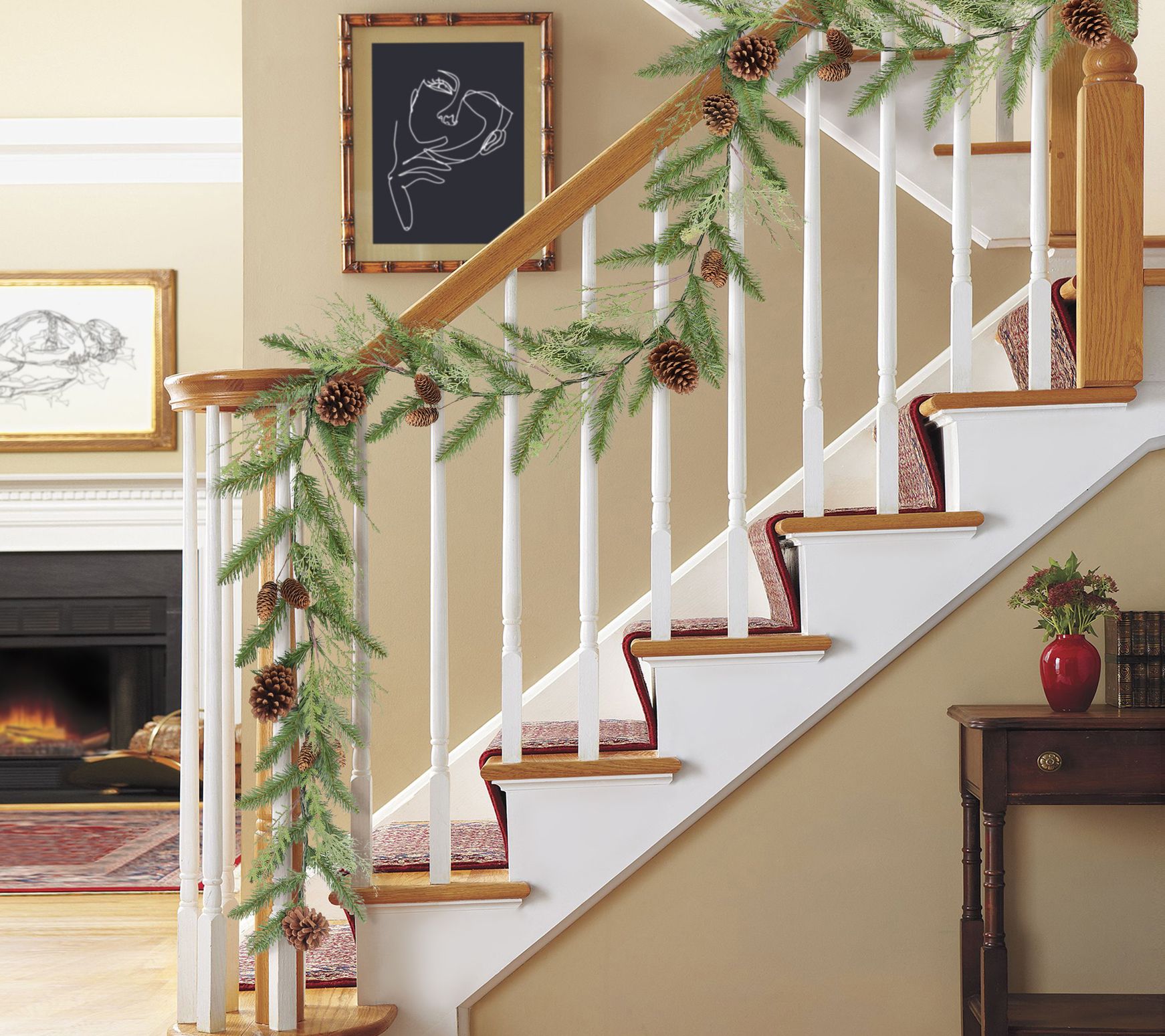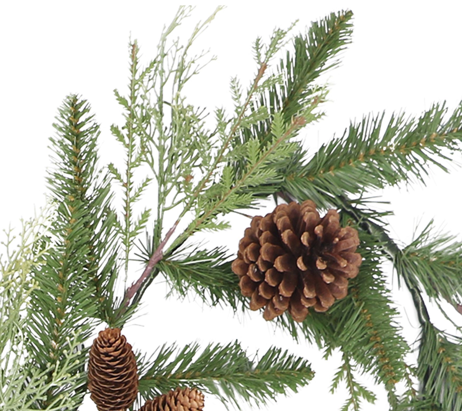 Transform your home or entryway into a winter wonderland with this lush faux cypress garland, accented with pinecones, it's perfect on a mantel or over a doorway. From Puleo International.