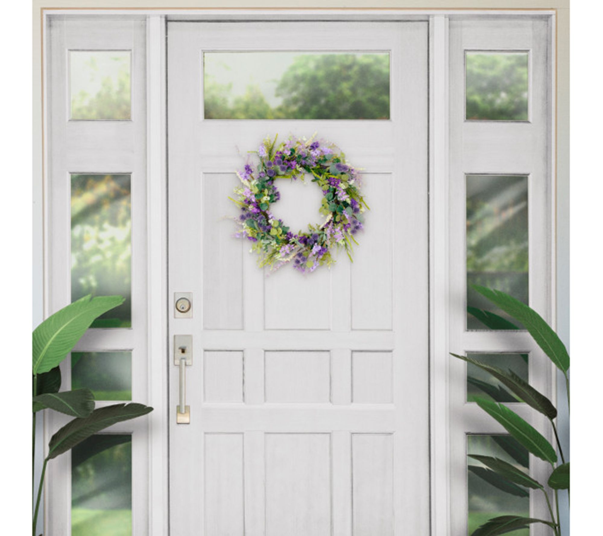Bring the essence of spring to your doorstep with this floral door wreath. This meticulously crafted wreath, adorned with vibrant echinops and set on a twig vine base, offers a hassle-free way to infuse your space with color and the feel of nature, requiring no maintenance for year-round beauty. From Puleo International.