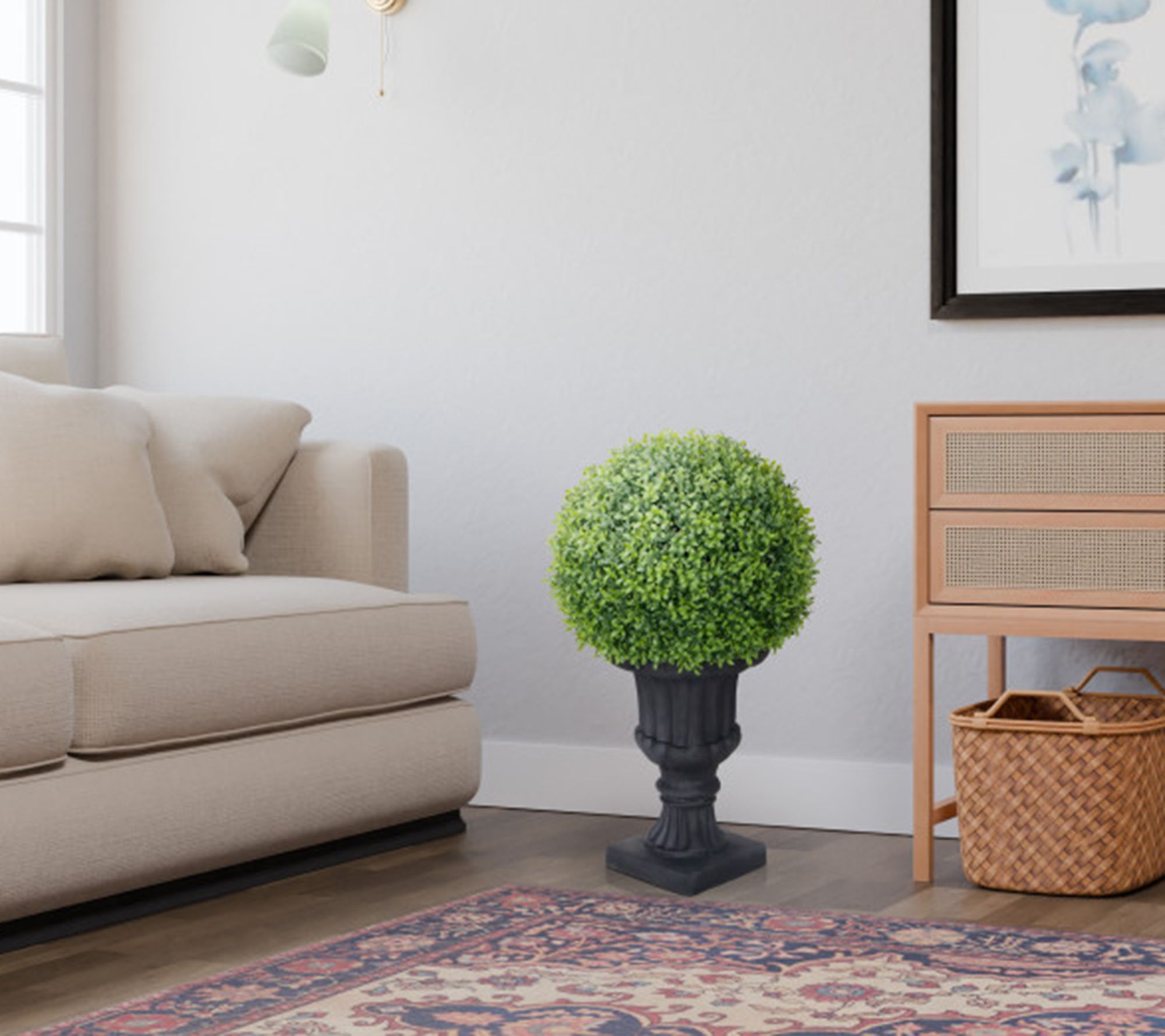 This lifelike boxwood tree brings natural beauty to your home, office, or front door. The no-maintenance style will make your living space feel relaxed and elegant. From Puleo International.