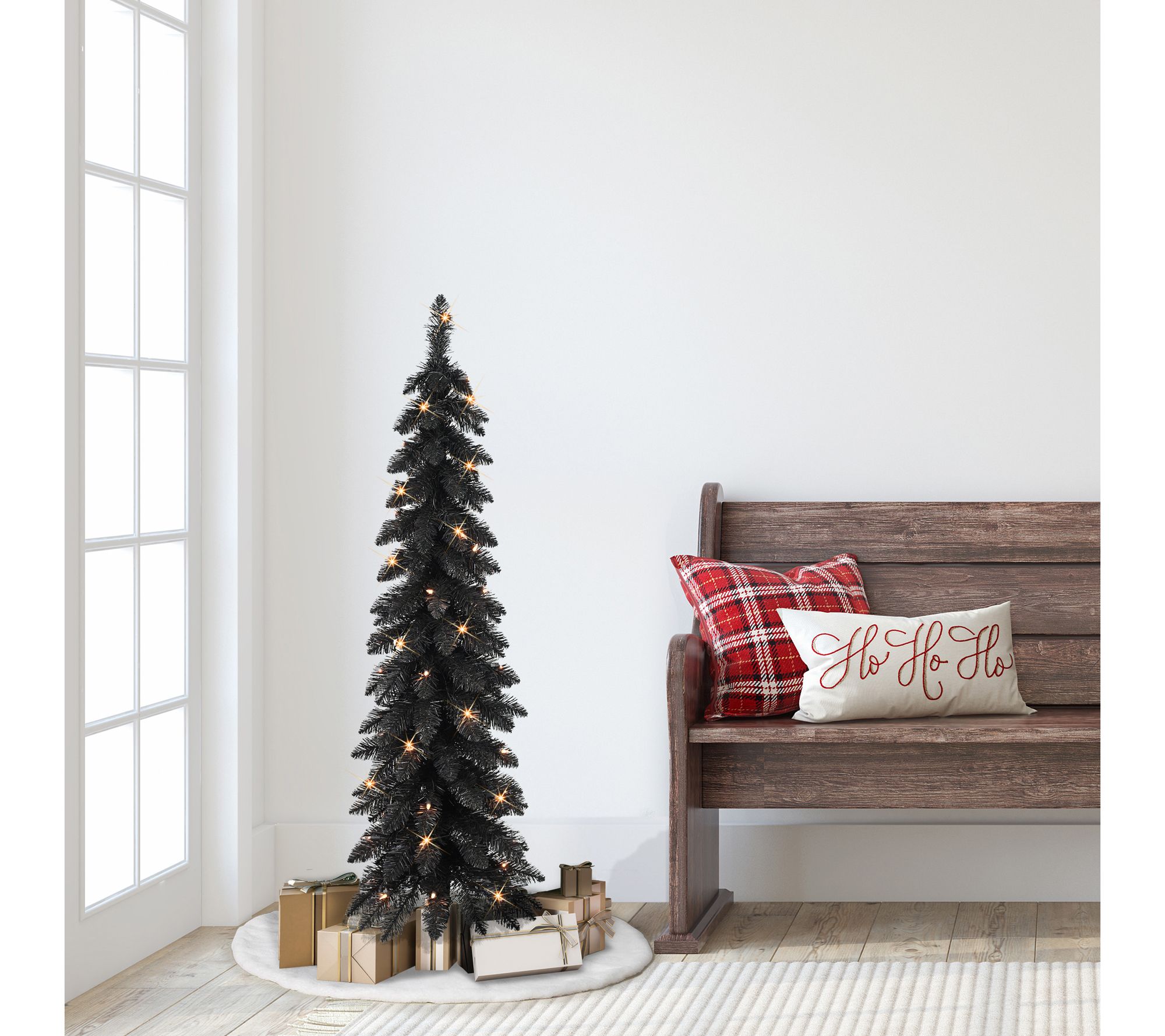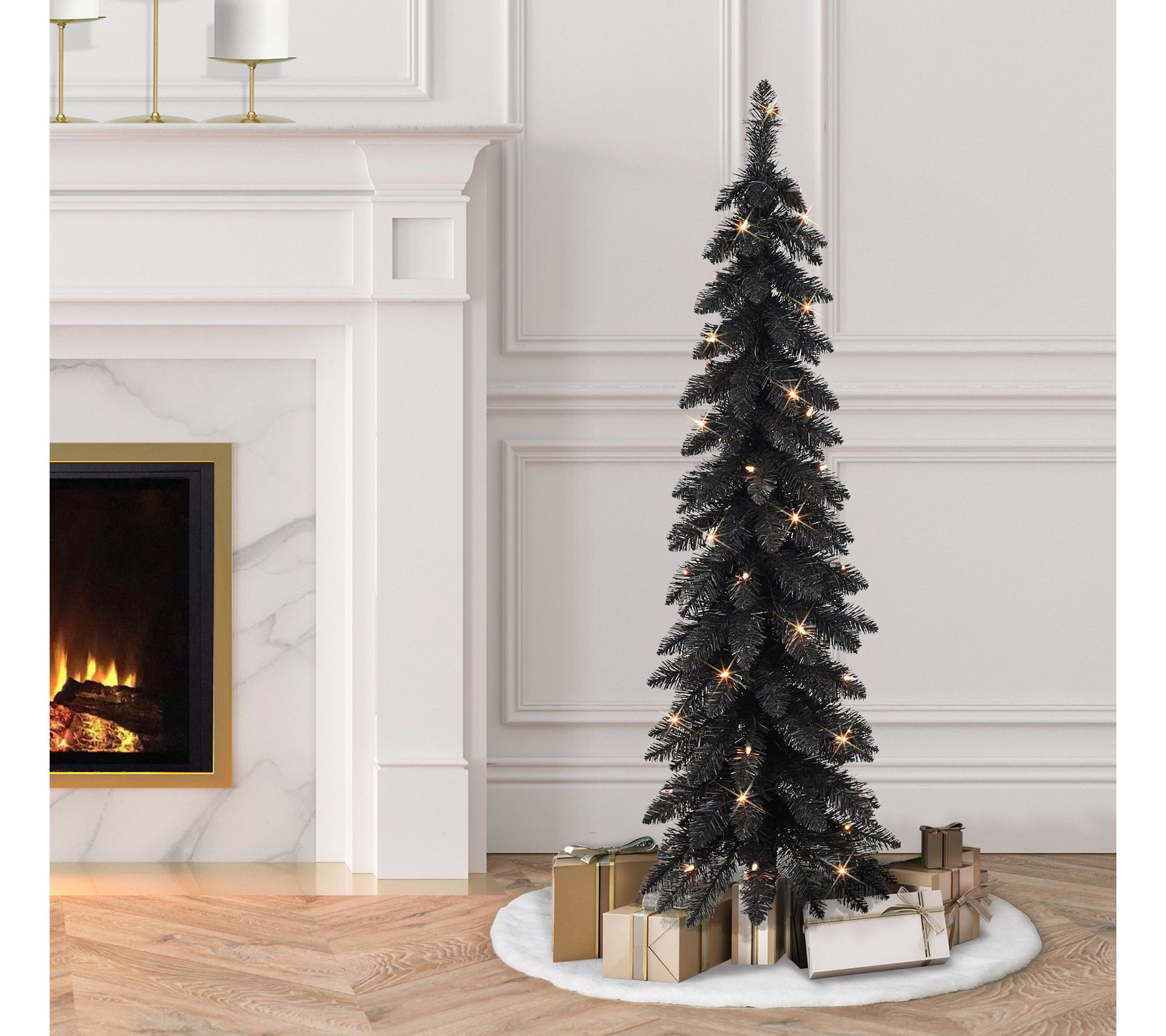 Make a modern style statement this holiday season with the eye-catching elegance of this black alpine pencil tree. Pre-lit with LED lights, it boasts a slender profile to fit into nearly any space. From Puleo International.