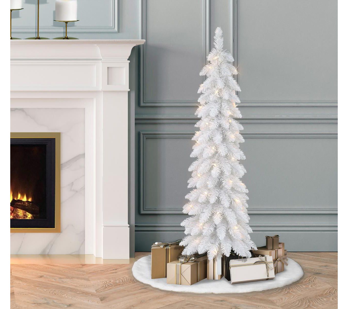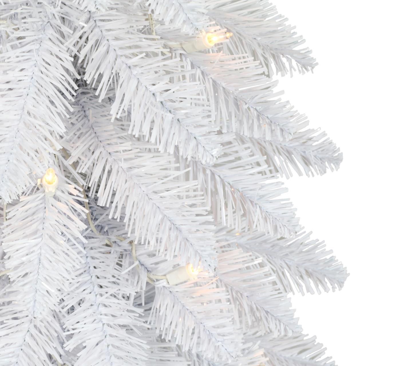 Make a modern style statement this holiday season with the eye-catching elegance of this white alpine pencil tree. Pre-lit with LED lights, it boasts a slender profile to fit into nearly any space. From Puleo International.