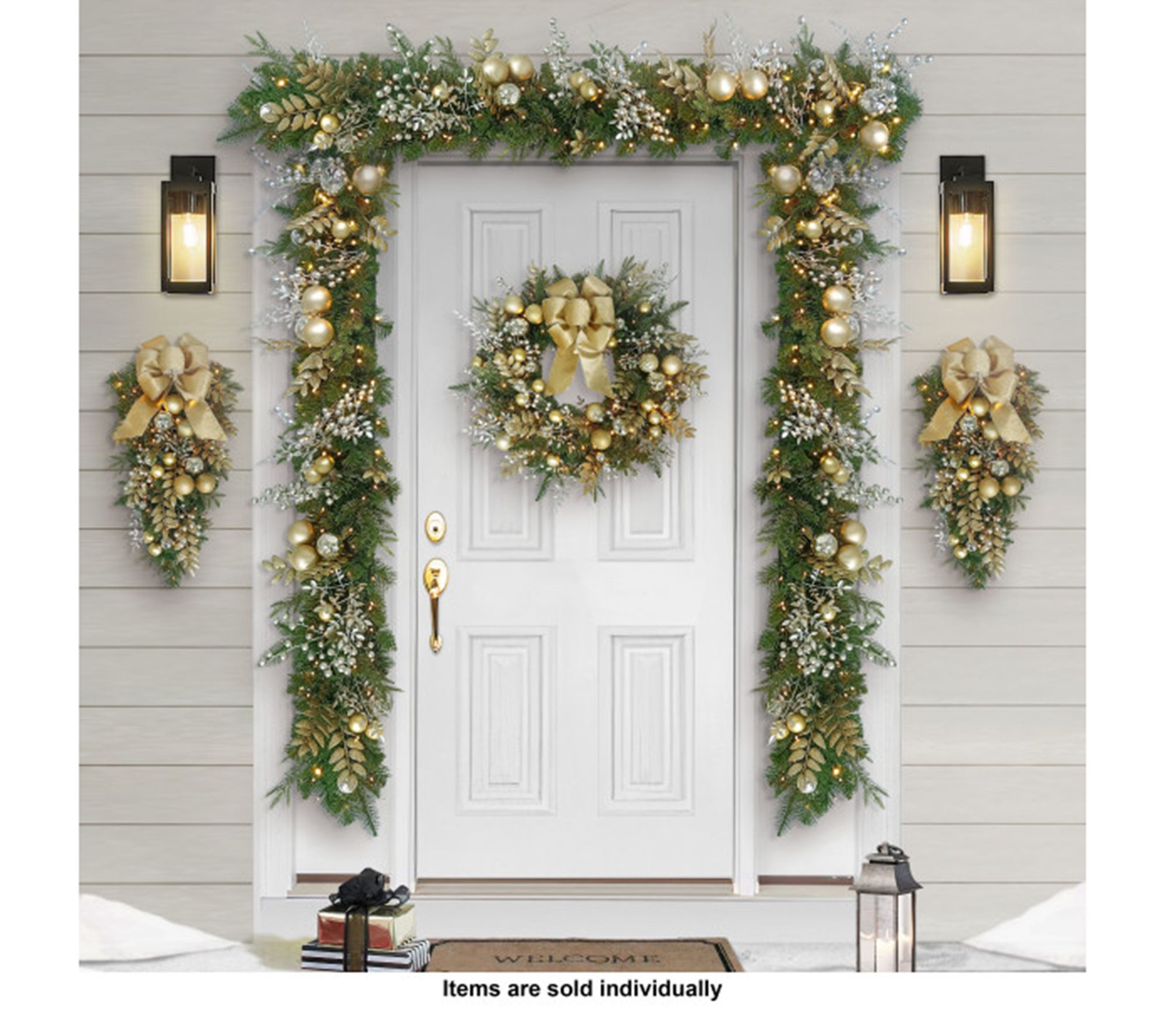Add elegance to your holiday decor with this pre-lit lifelike garland. This stunning piece lights up with 120 warm white LEDs, brightening up your front door, banister, or mantelpiece. From Puleo International.