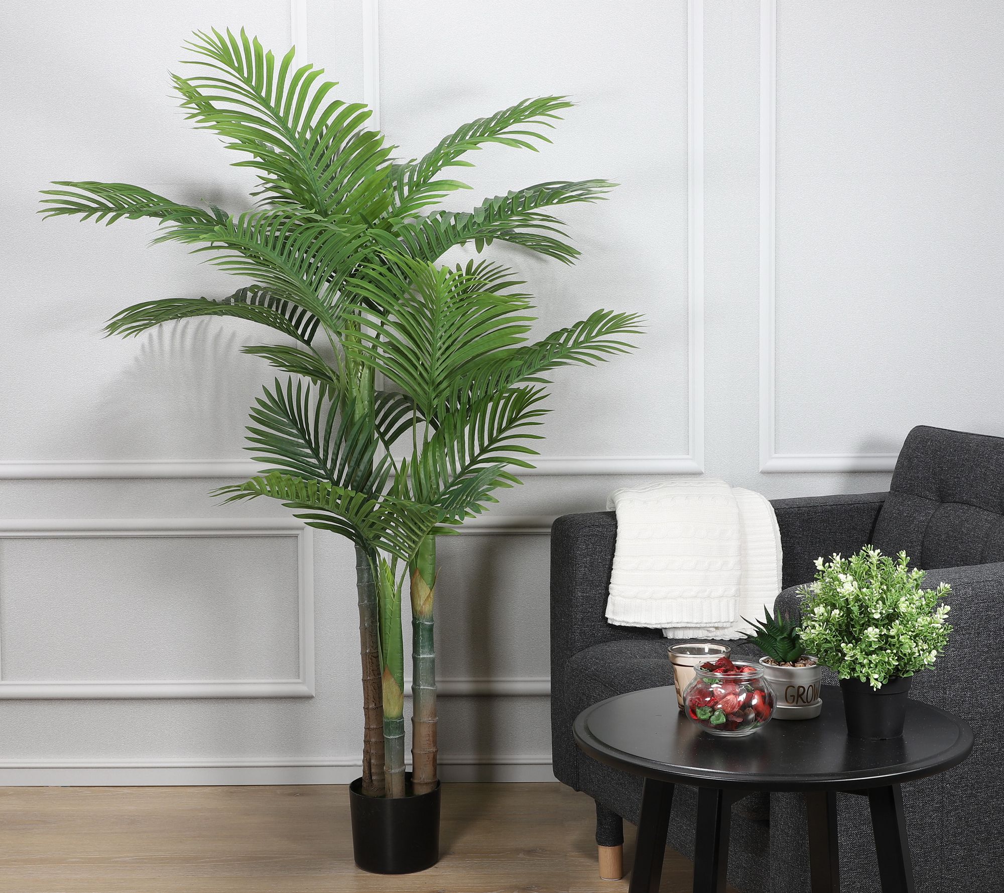 • Artificial potted areca palm tree in a vase