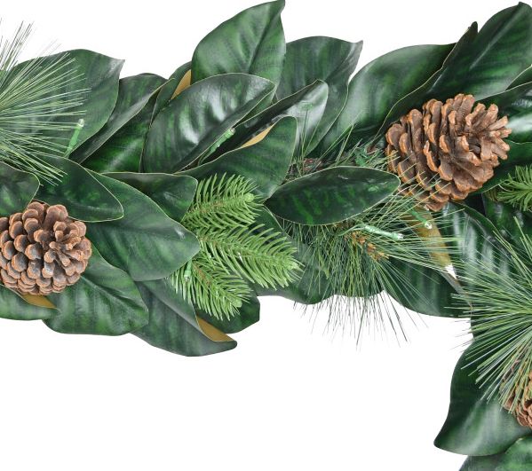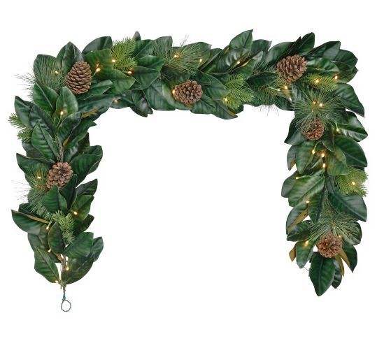 Puleo International 6ft Pre-Lit Magnolia Artificial Garland