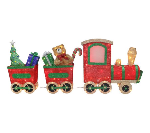Emulate the North Pole in your own front yard with the Puleo International wire frame train. Pre-lit with 180 warm white LED lights, it adds a touch of colorful joy to your holiday display. From Puleo International.