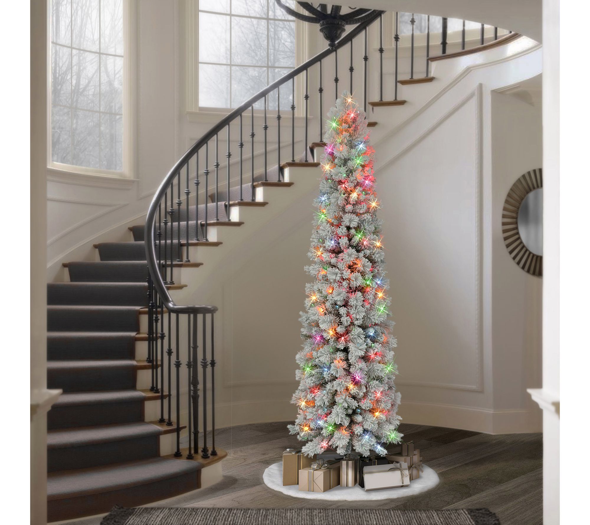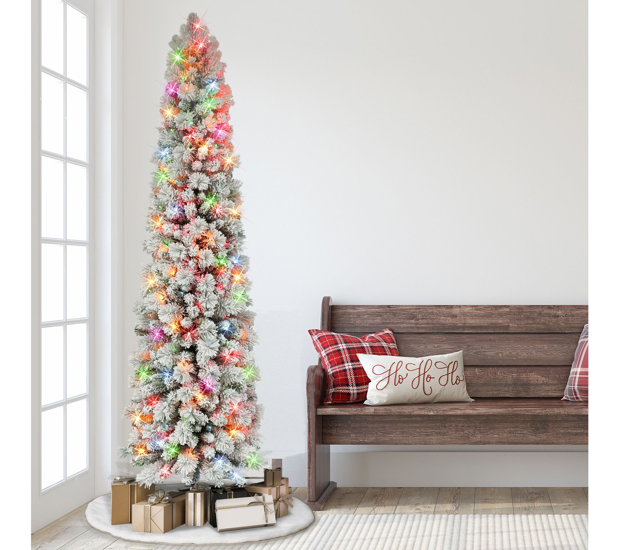 Puleo International 7.5 ft Pre-Lit Flocked Portland Pine Tree