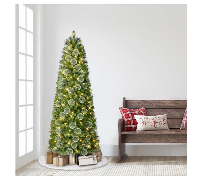 Transform your holiday display with this clever collapsible faux tree, a splendid centerpiece that combines convenience with charm. This tree dazzles with warm white LED lights, offering a festive glow without the hassle of stringing lights. Its unique pop-up design ensures easy assembly and storage, while the sturdy metal stand provides stability. From Puleo International.