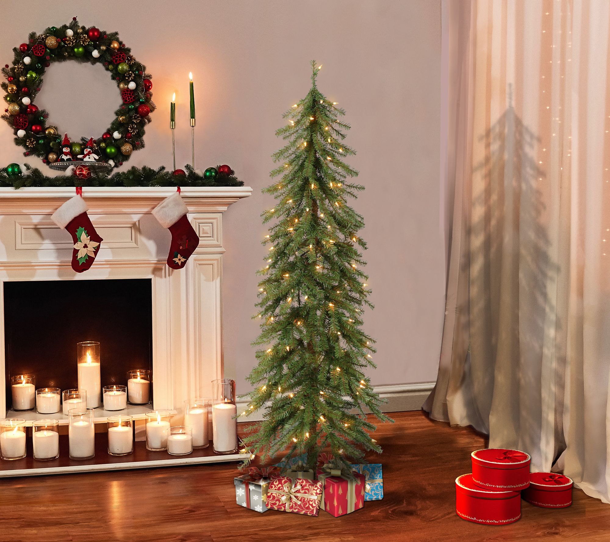 Finished with lifelike branches and 100 clear lights, this Alpine Christmas tree is the merry symbol you need to greet your guests this holiday season. From Puleo International.