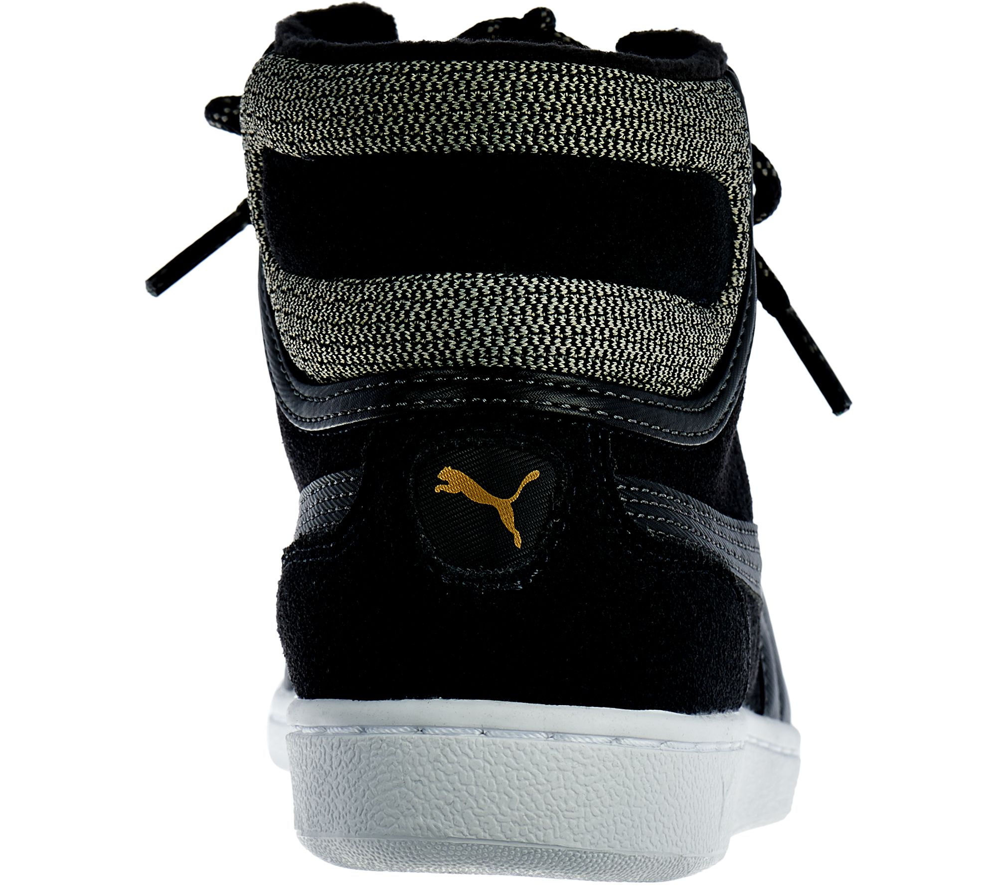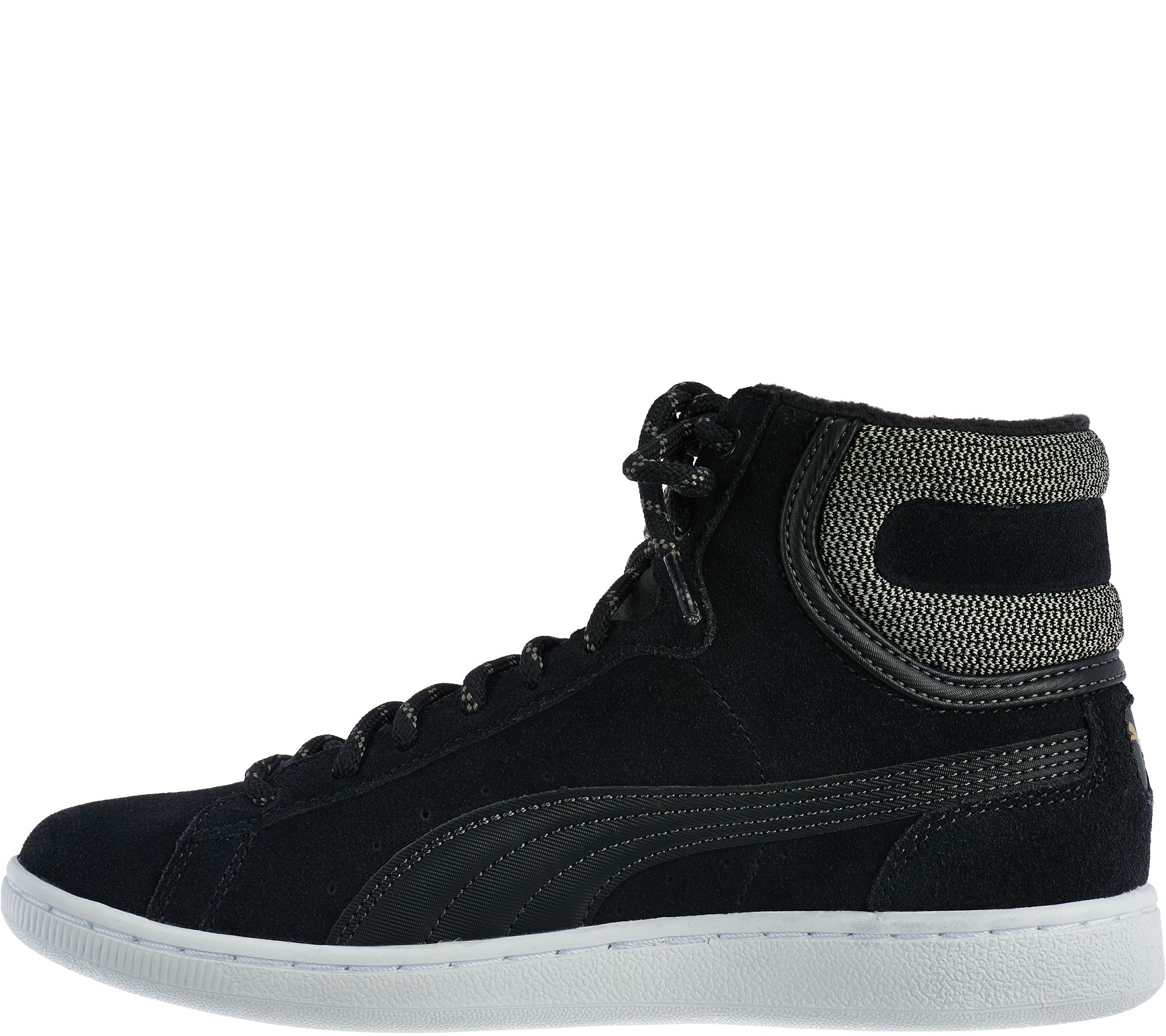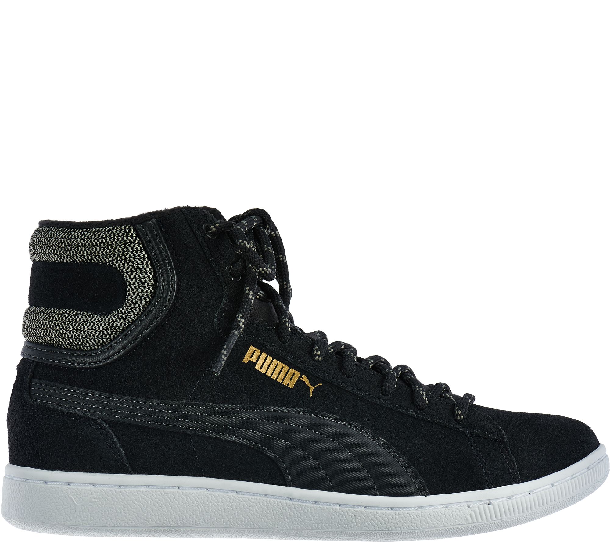 Score style points with these high-top PUMA sneakers. The basketball-inspired Vikky Mid design sports a full suede upper, complete with hiking laces and a twill detail on the collar for a fabulous finishing touch. From PUMA.