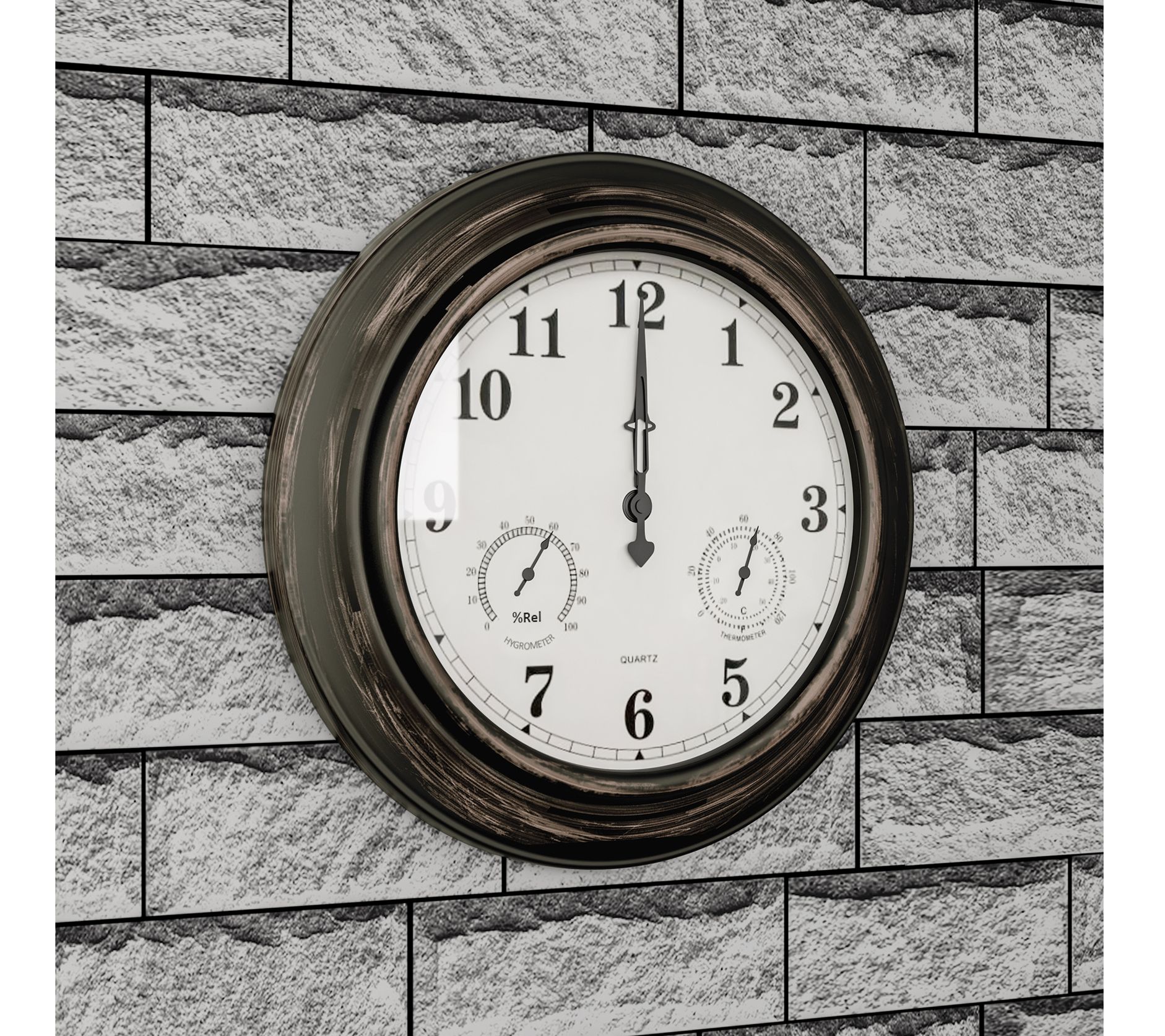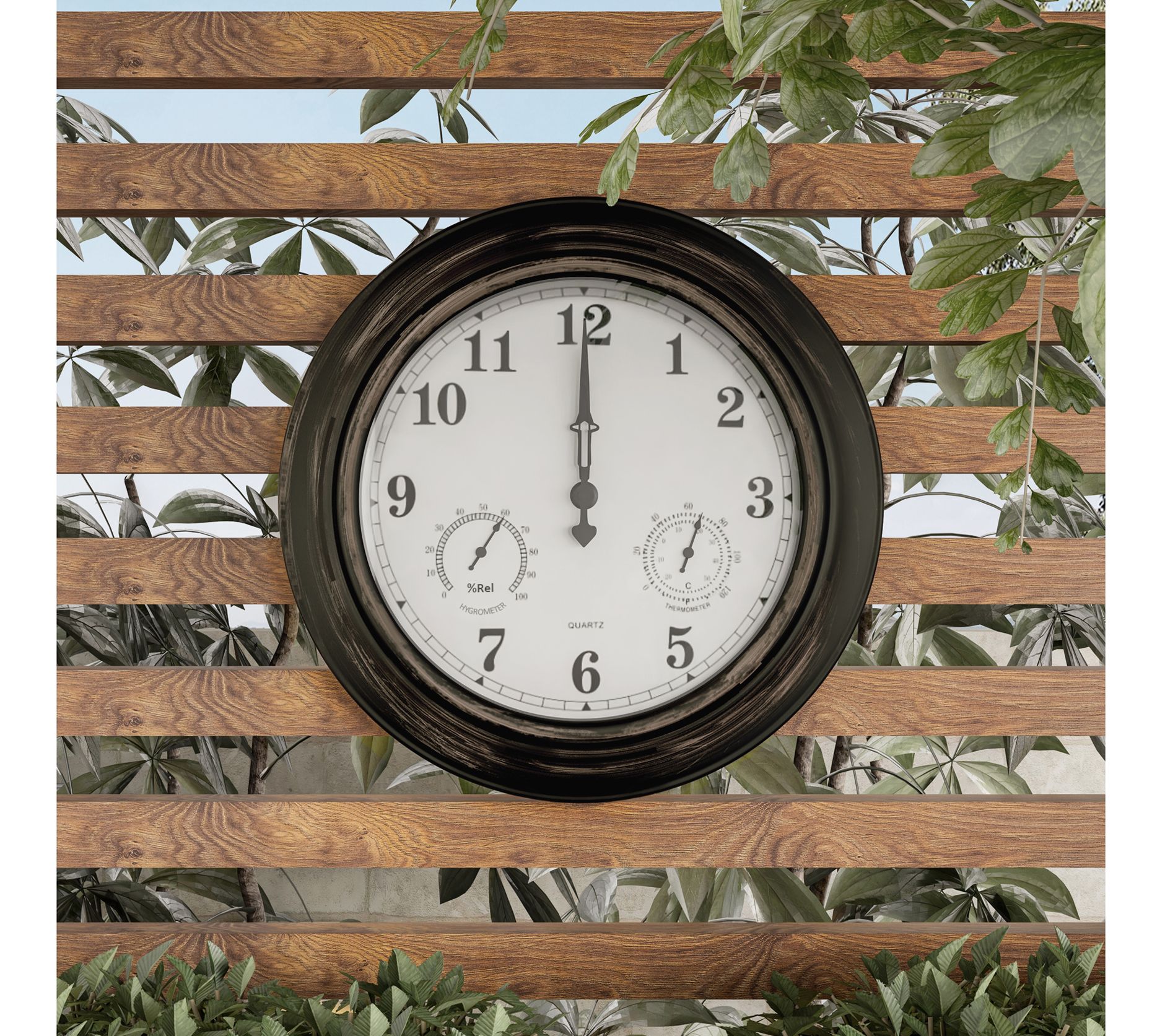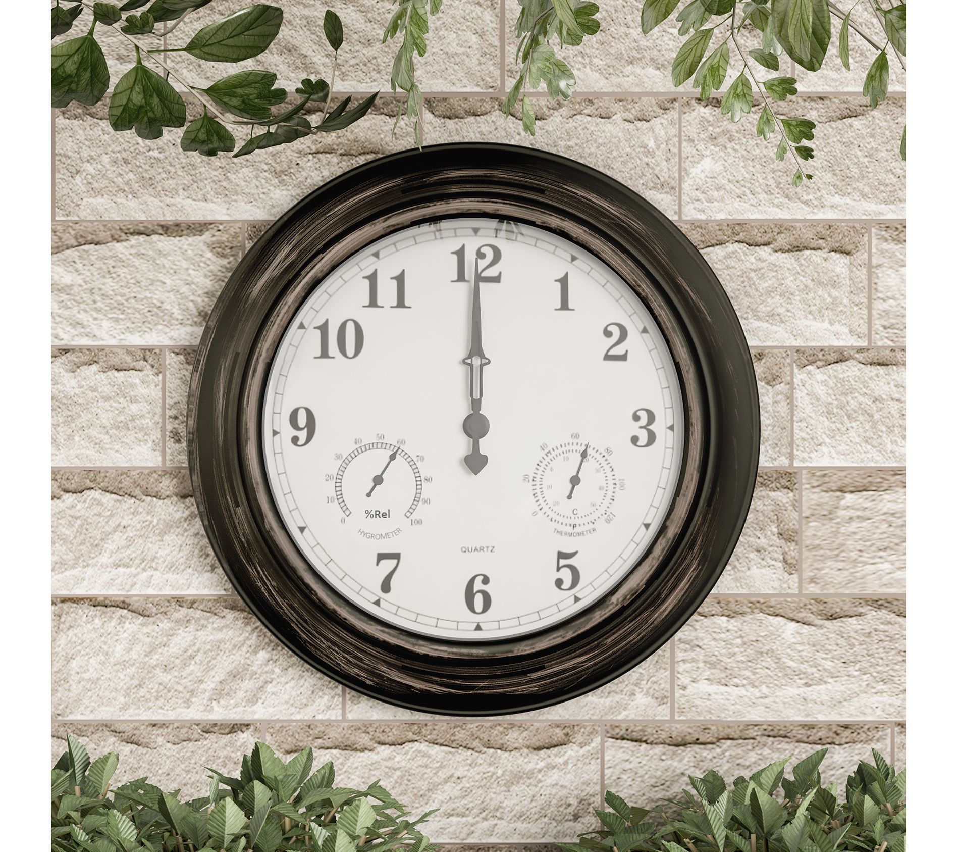 Pure Garden 18" Quartz Indoor Outdoor Wall Clock Thermometer