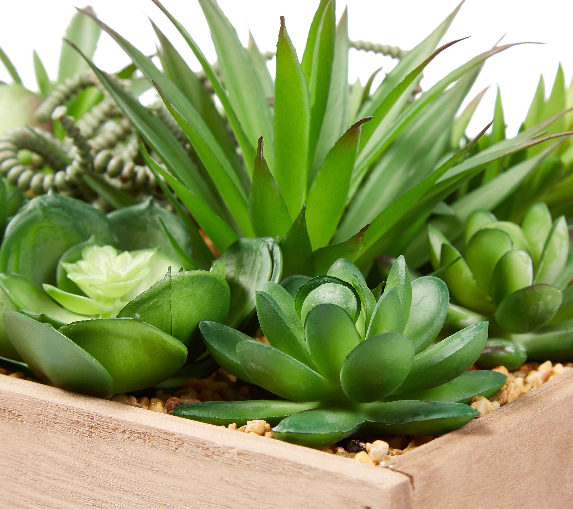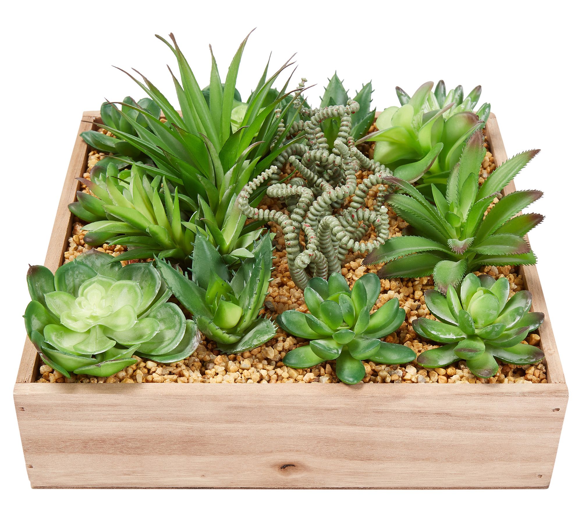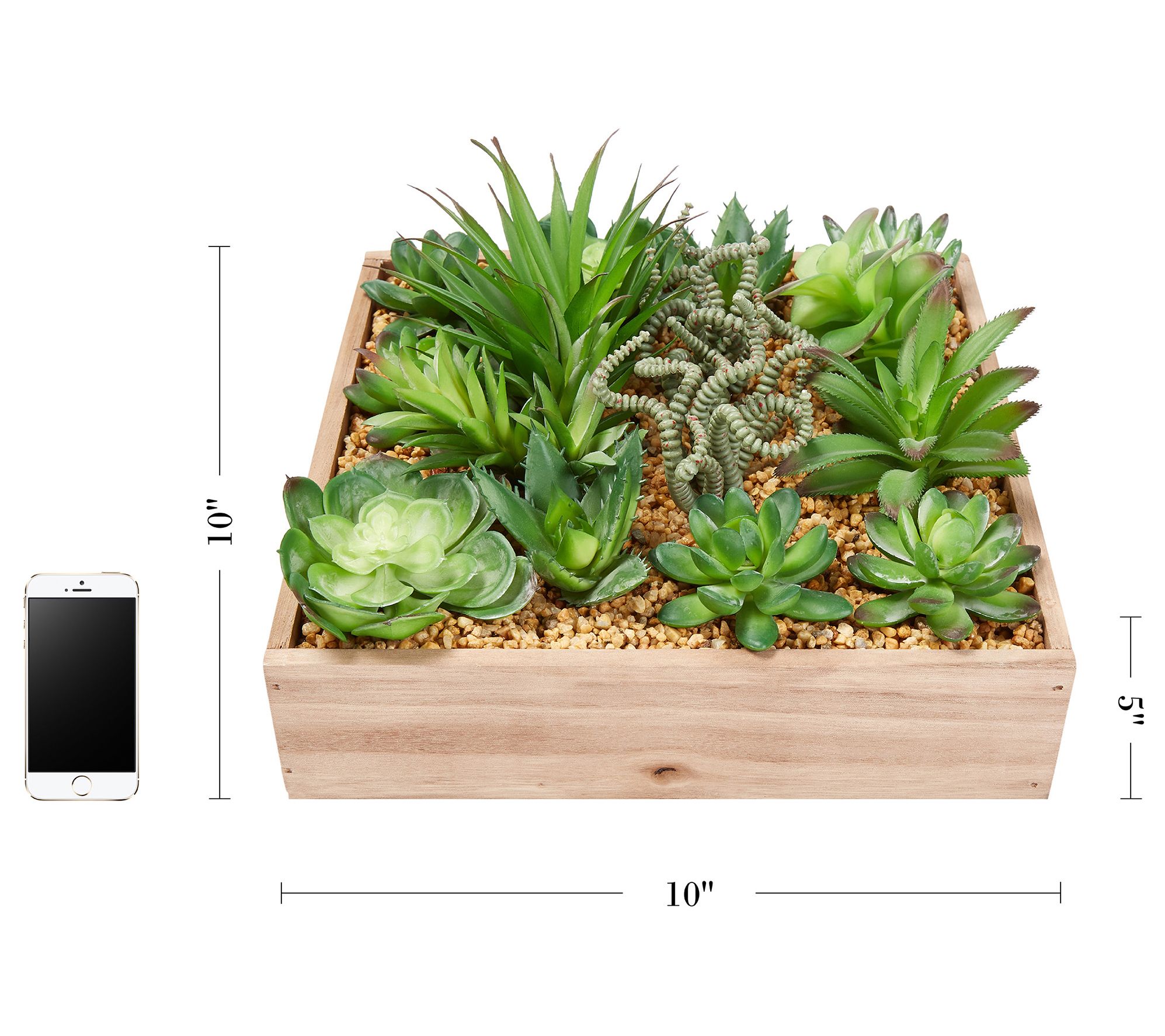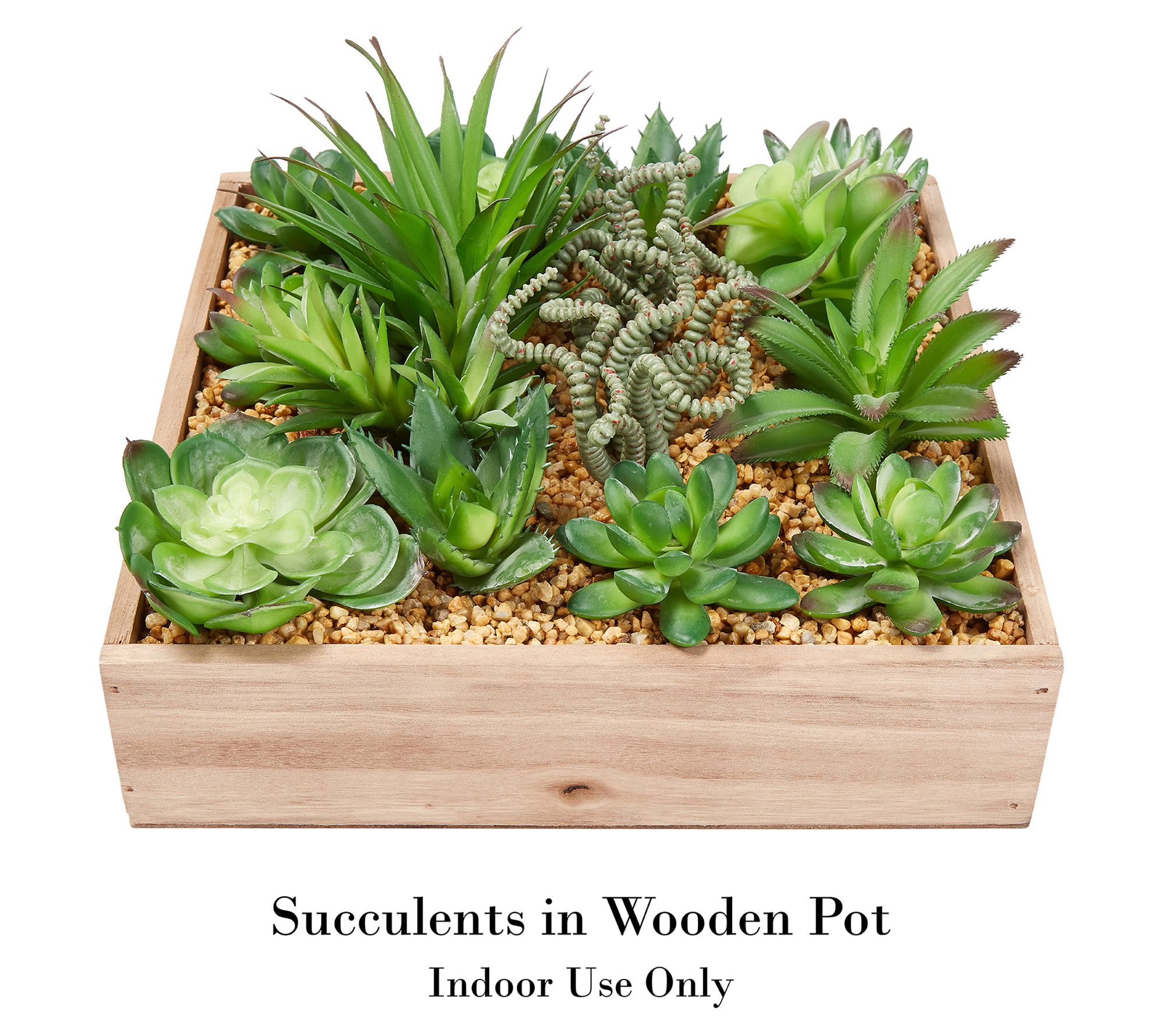 Pure Garden Assorted Faux Succulents with 10" Wooden Box