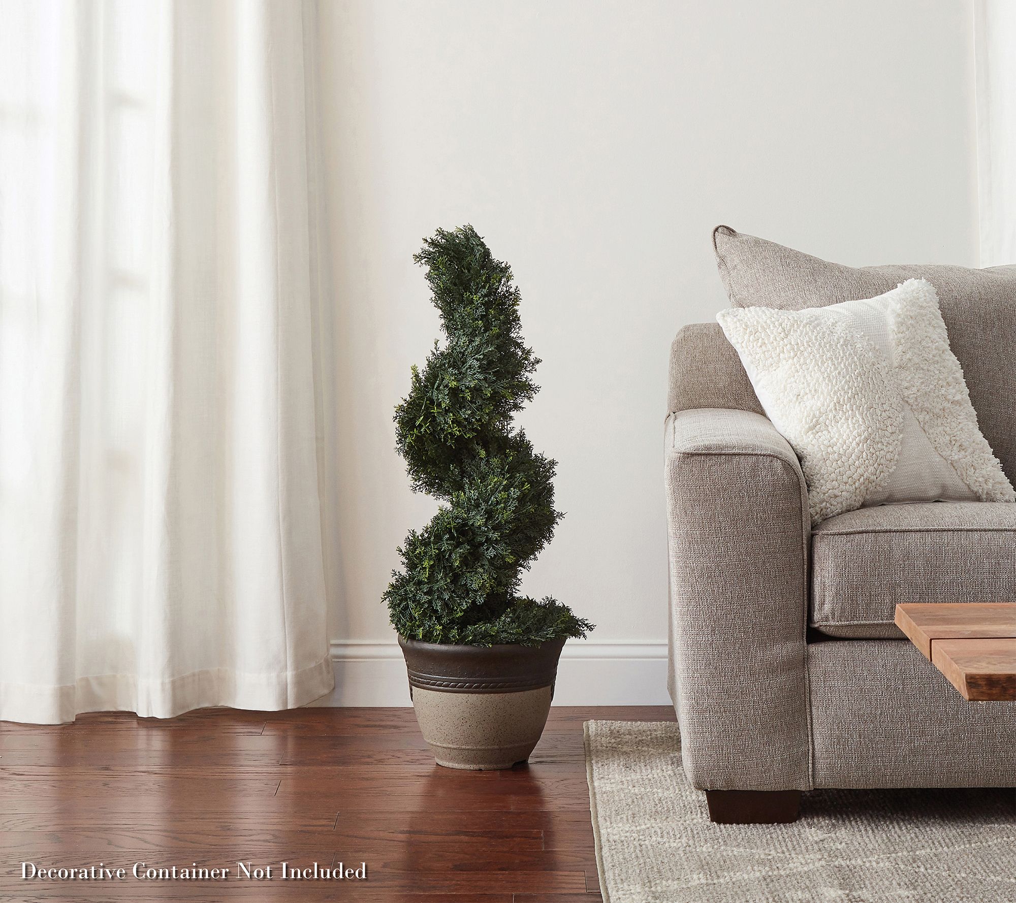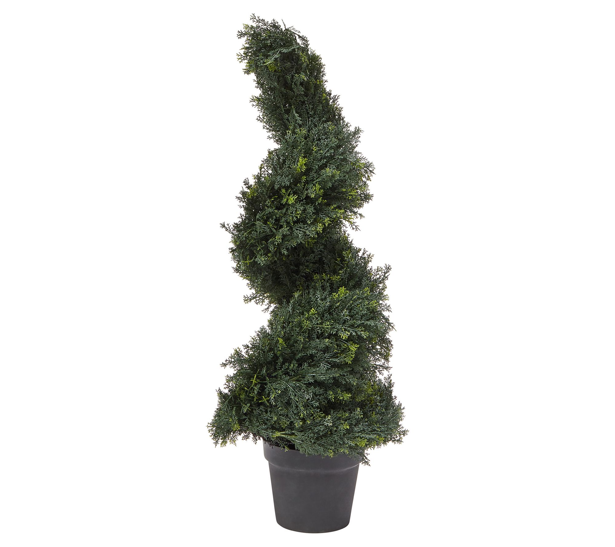 • Lifelike cypress spiral topiary in pot