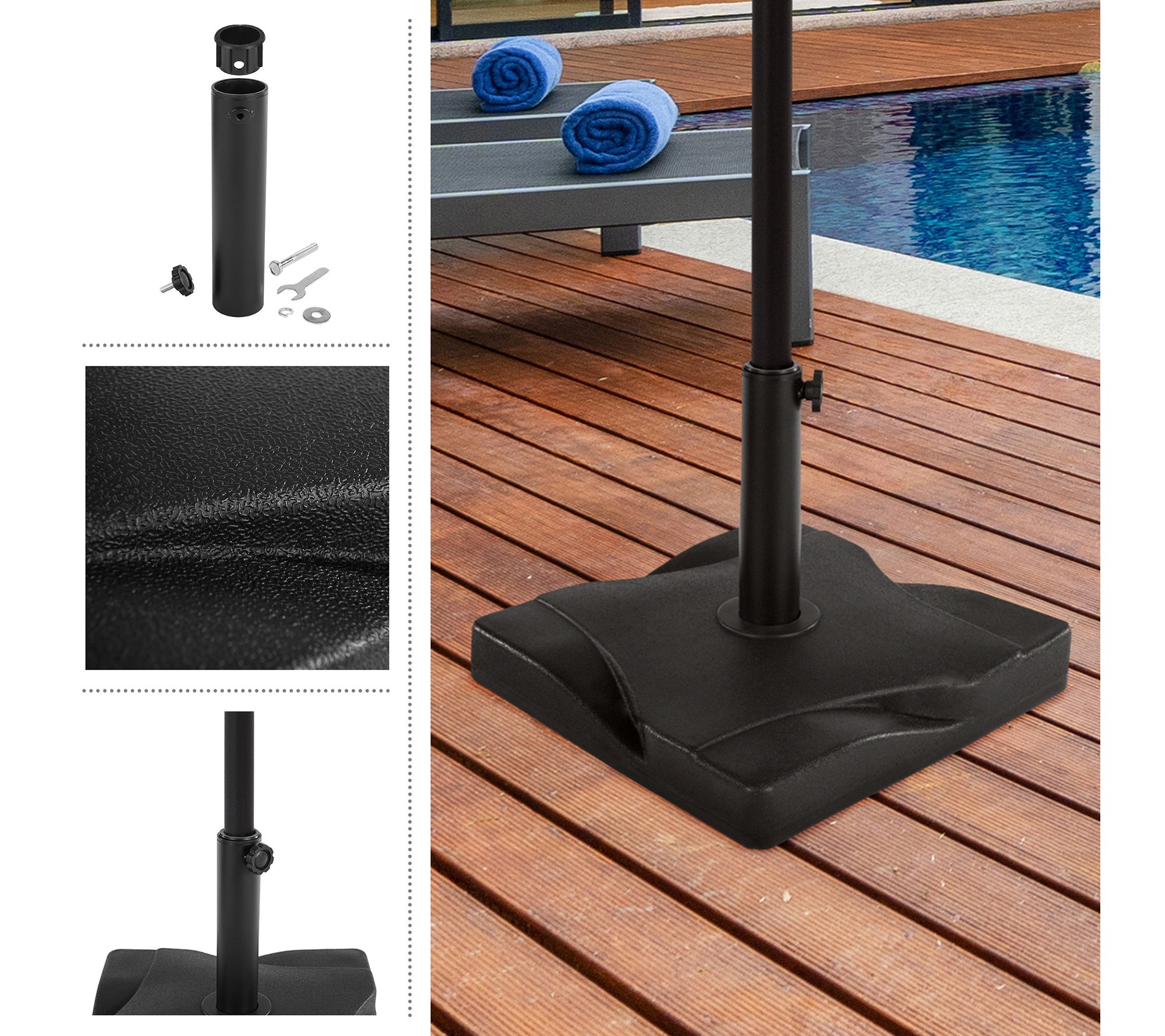 • Includes umbrella base, hardware, and instruction manual