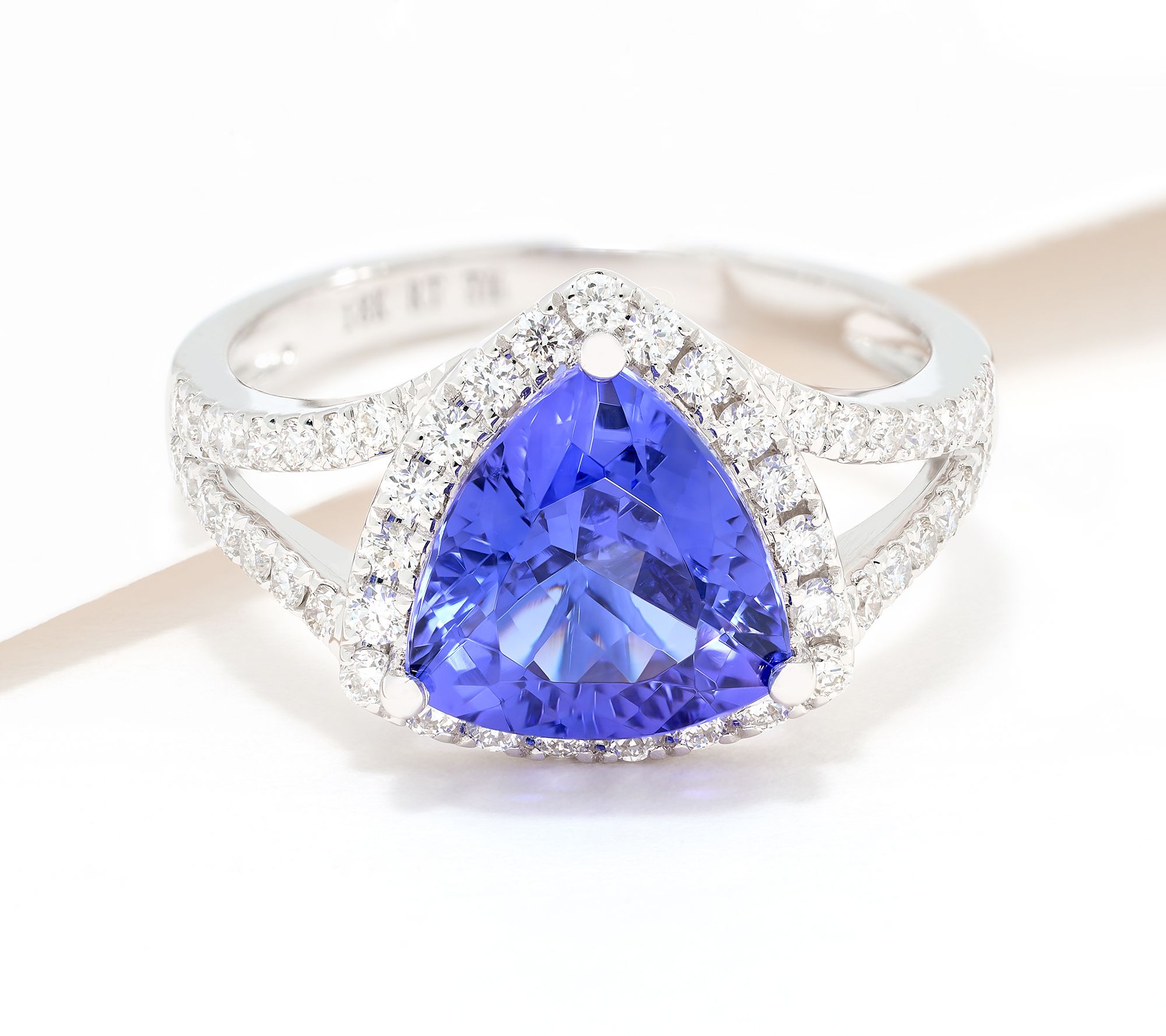 Take your evening look to the next level with this stunning trillion-cut heat-treated tanzanite and diamond ring. The striking blend of rich, blue trillion tanzanite and sparkling pave-set diamonds creates a memorable centerpiece, perfect for celebrations or adding luxury to any outfit. But, then again, why save it for special occasions? Wear this delightful dazzler on the daily... just because. From Pure Tanzanite.