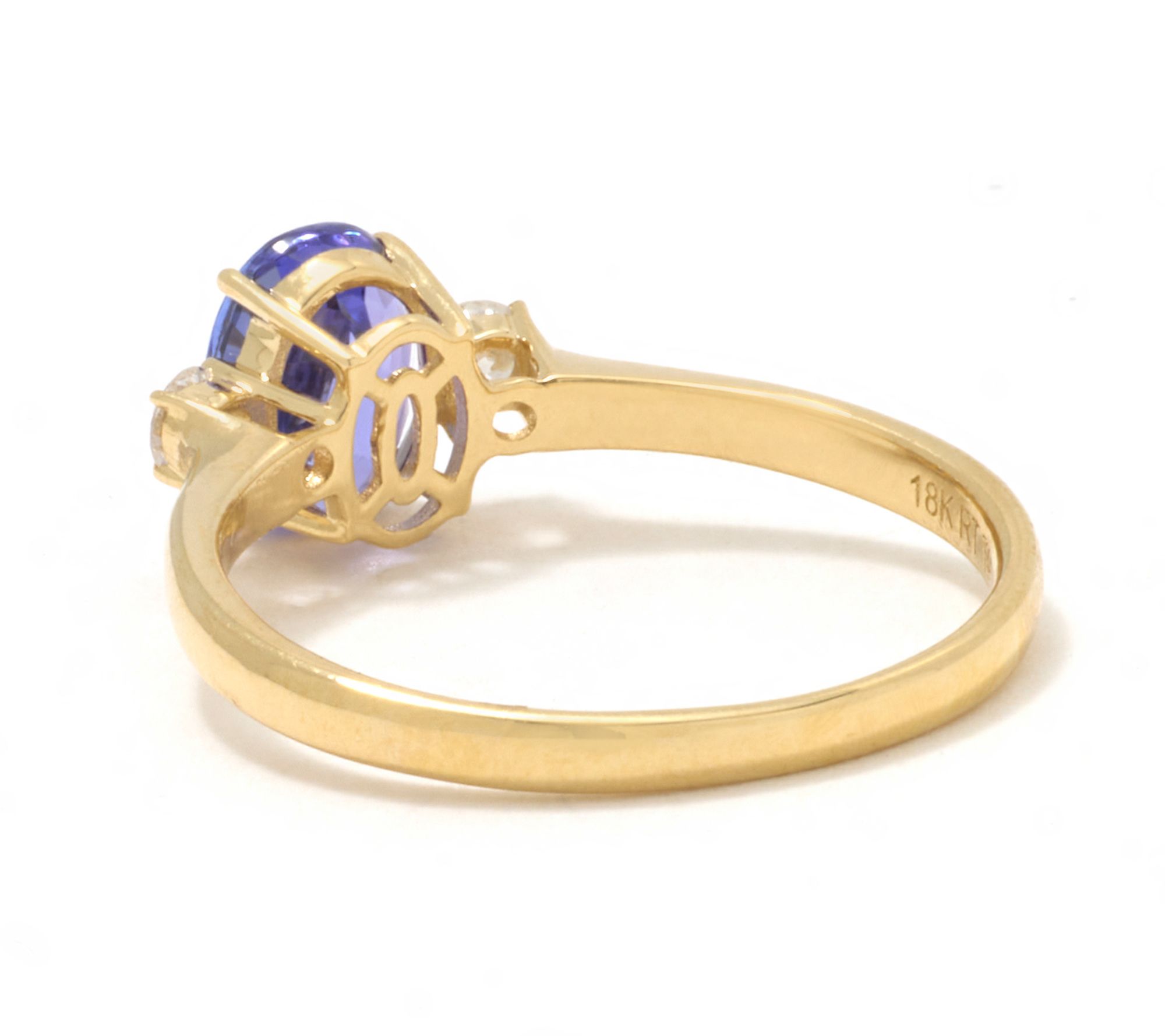 Brilliant color and sophistication meet in this 18K gold ring, showcasing an oval heat-treated tanzanite paired with a halo of sparkling pave diamonds. Whether you choose the warmth of 18K yellow gold or the sleek shimmer of 18K white gold, this ring adds a stunning touch to any special event or everyday look. From Pure Tanzanite by Jeff Moseley.