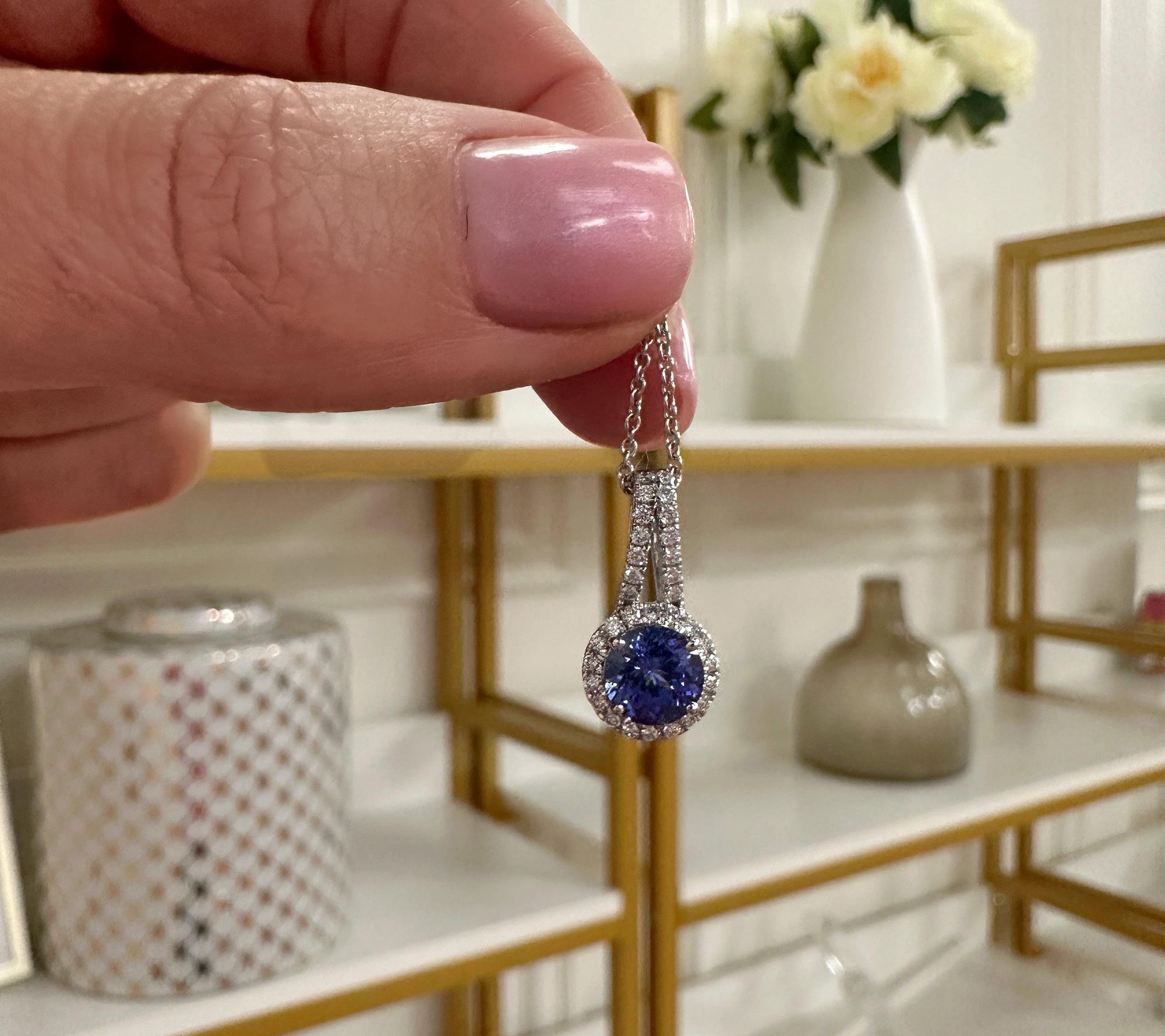 Mark a milestone, accessorize for a special event, or just think outside the (jewelry) box by treating yourself to this heat-treated tanzanite drop pendant. Its mesmerizing violet-blue hue and sparkling diamonds will leave you -- and everyone else -- positively awestruck. From Pure Tanzanite by Jeff Moseley.