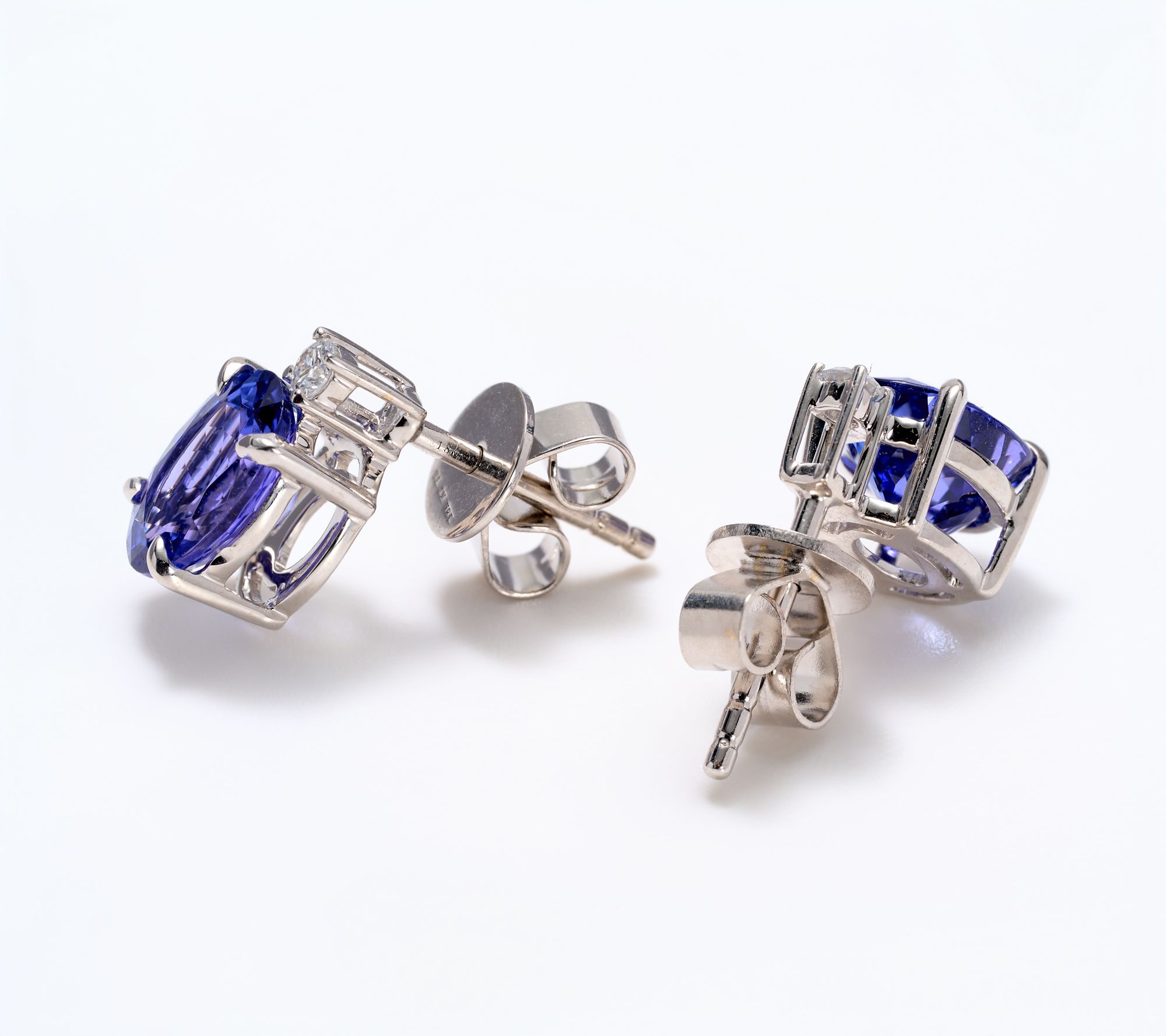 Glimmering oval-cut, heat-treated tanzanite stones are paired with sparkling diamond accents in these stunning stud earrings. Wear them to brighten a casual brunch or to bring a dash of refined color to your favorite night-out ensemble. From Pure Tanzanite by Jeff Moseley.