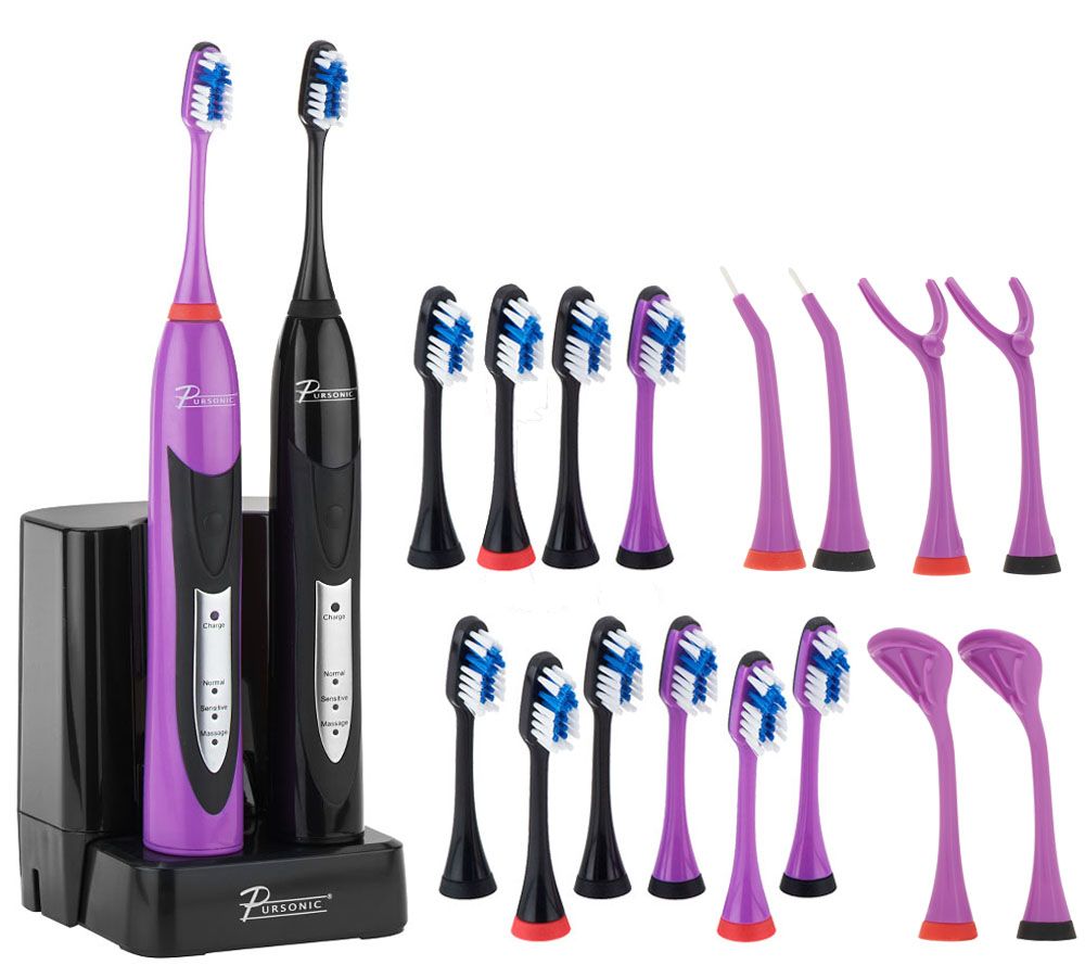 His and hers. The Pursonic S522 comes with two rechargeable toothbrushes that charge at the same time in one dock! Provides 40,000 sonic strokes per minute to remove plaque without irritating gums, and works deep between teeth to hit hard-to-reach areas. From Pursonic.