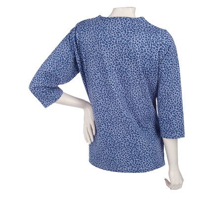 Quacker Factory 3/4 Sleeve Animal Printed Sequin T-shirt