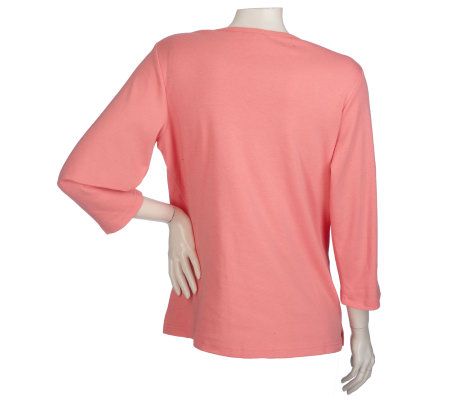 Quacker Factory 3/4 Sleeve Beads and Rocks V-neck T-shirt