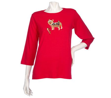 Quacker Factory 3/4 Sleeve Diva Pets T-shirt