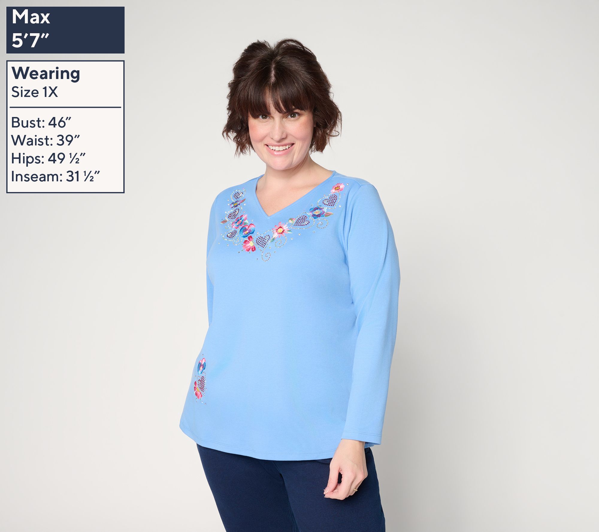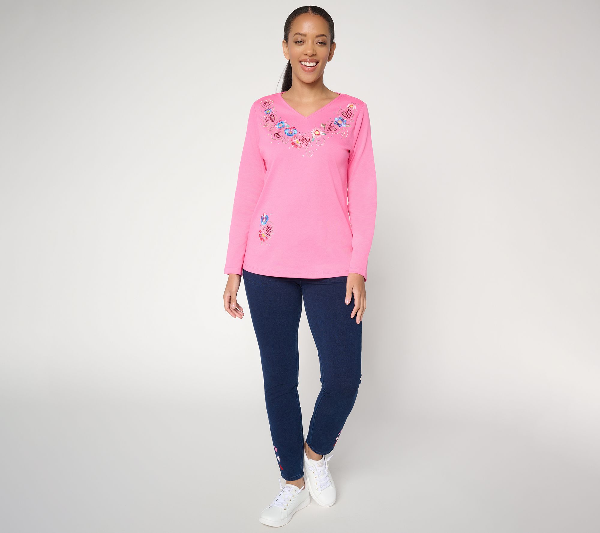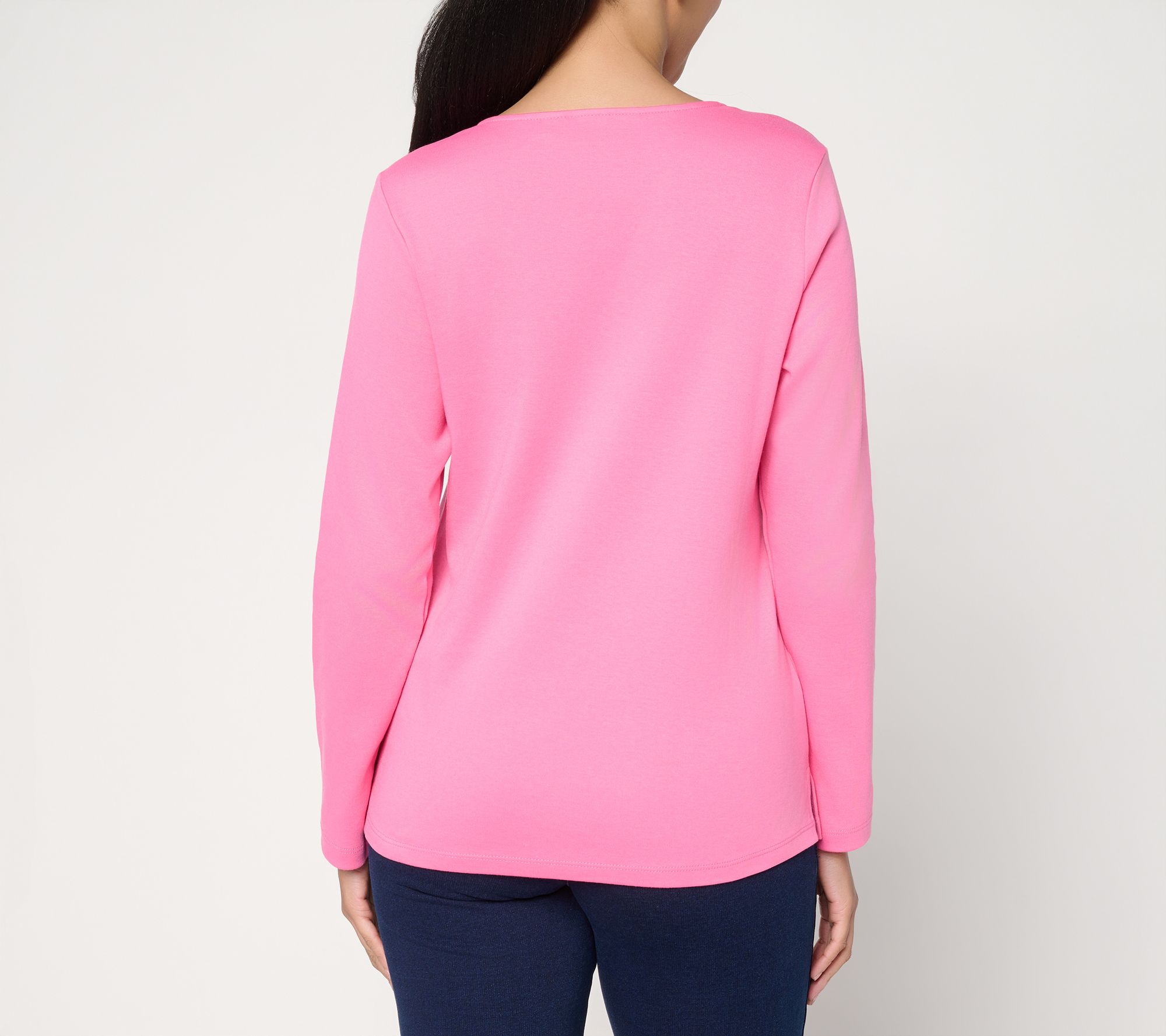 Sweet style meets everyday charm with the Be Mine long-sleeve top, an easy choice for everything from brunch with friends to lounging at home. The graceful silhouette feels casual yet flattering, while side slits and a straight hem offer simple movement for busy days or laid-back evenings. From Quacker Factory®.