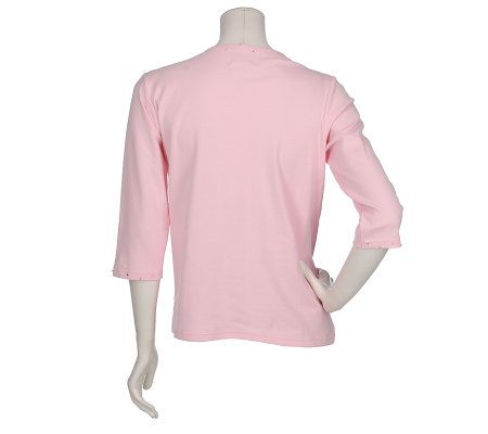 Quacker Factory Beaded Easter Motif 3/4 Sleeve Knit Top