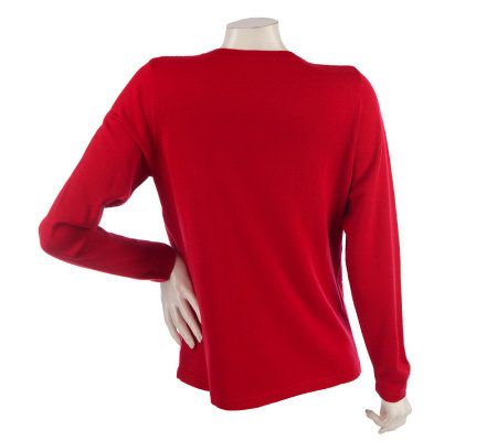 Festively floral. Welcome Christmas in style when you wear this cheerful cardigan. Decorated with ornate embroidery embellished with rhinestones and beads, this sweater invites everyone else to celebrate the most wonderful time of the year with you. From Quacker Factory.
