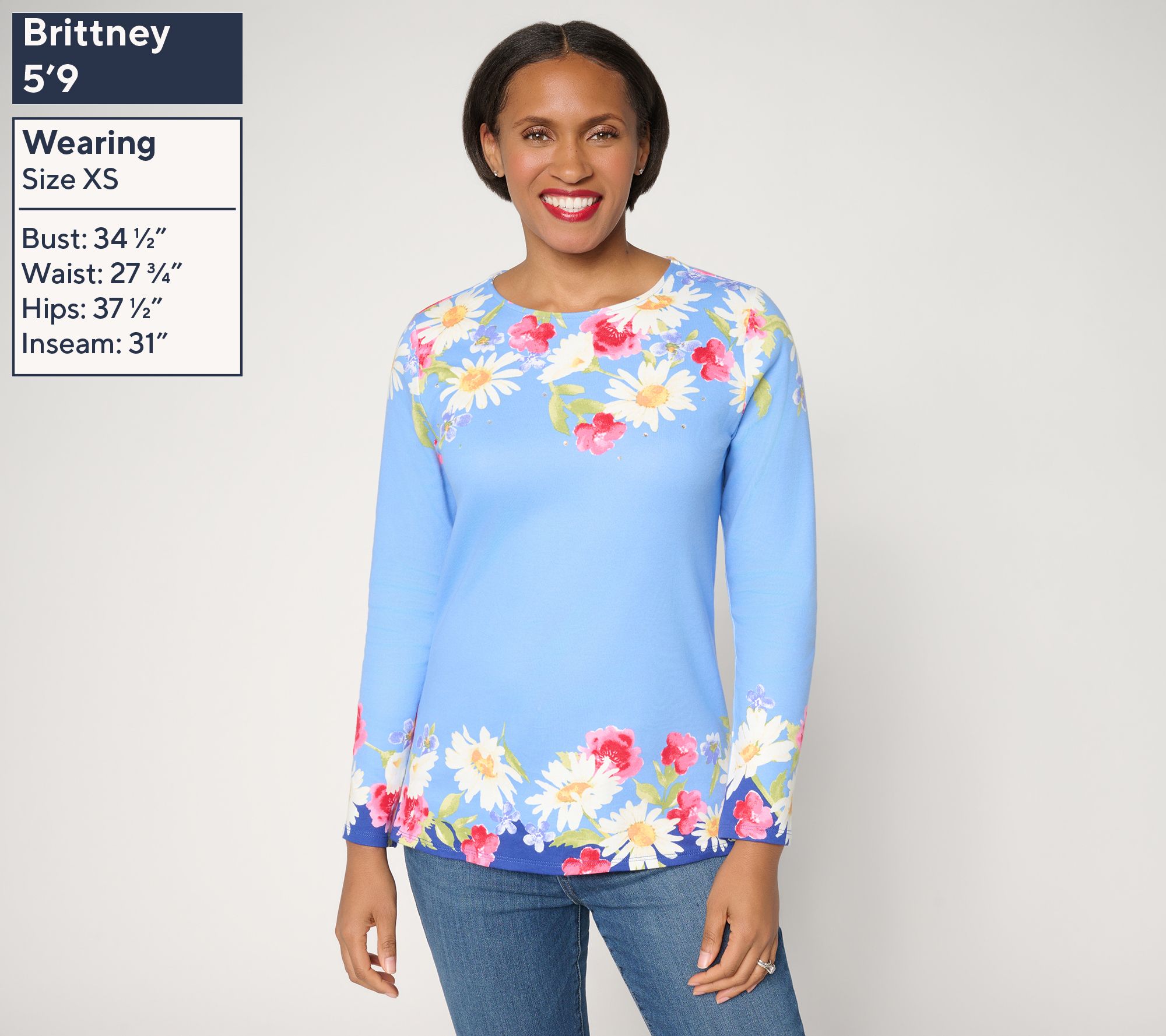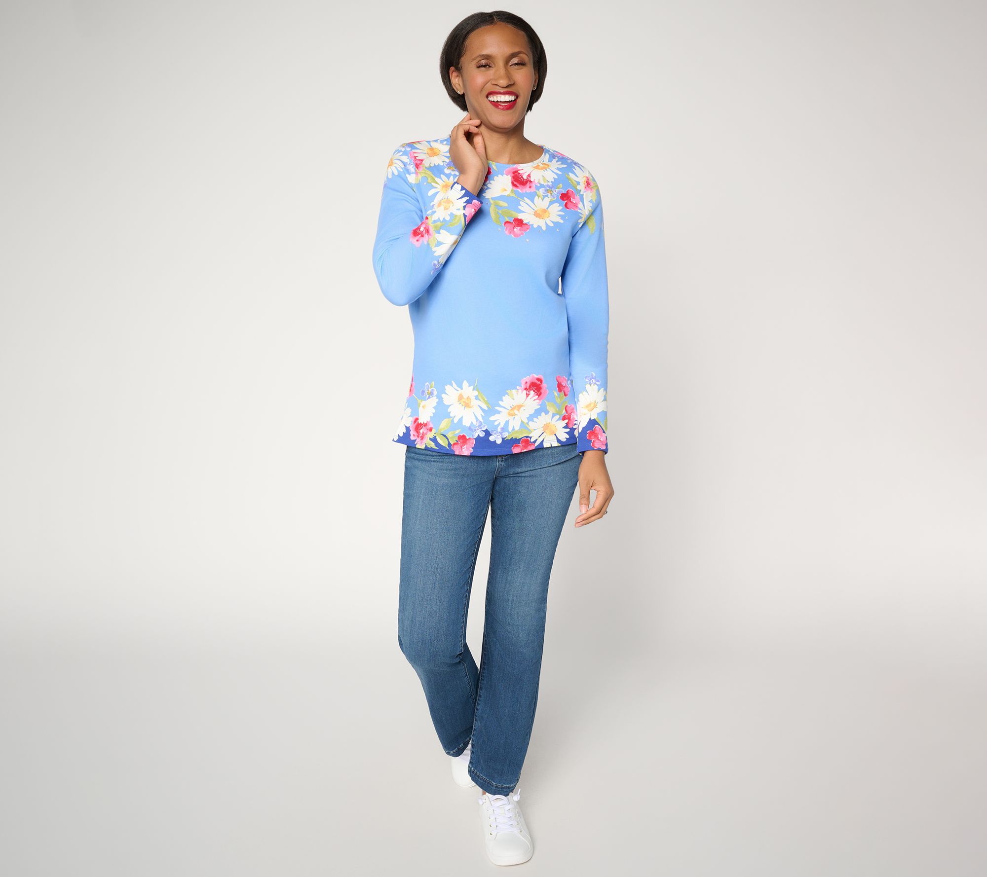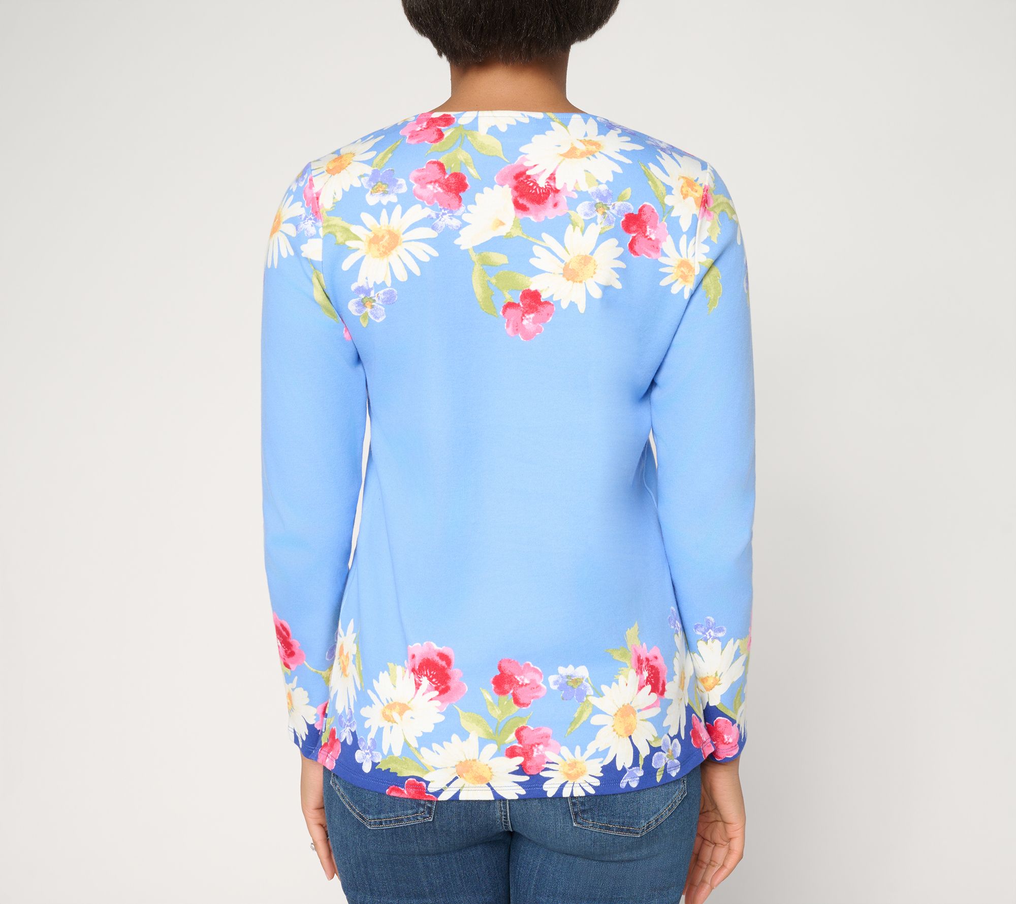 Quacker Factory Crazy Daisy Printed Long Sleeve Top