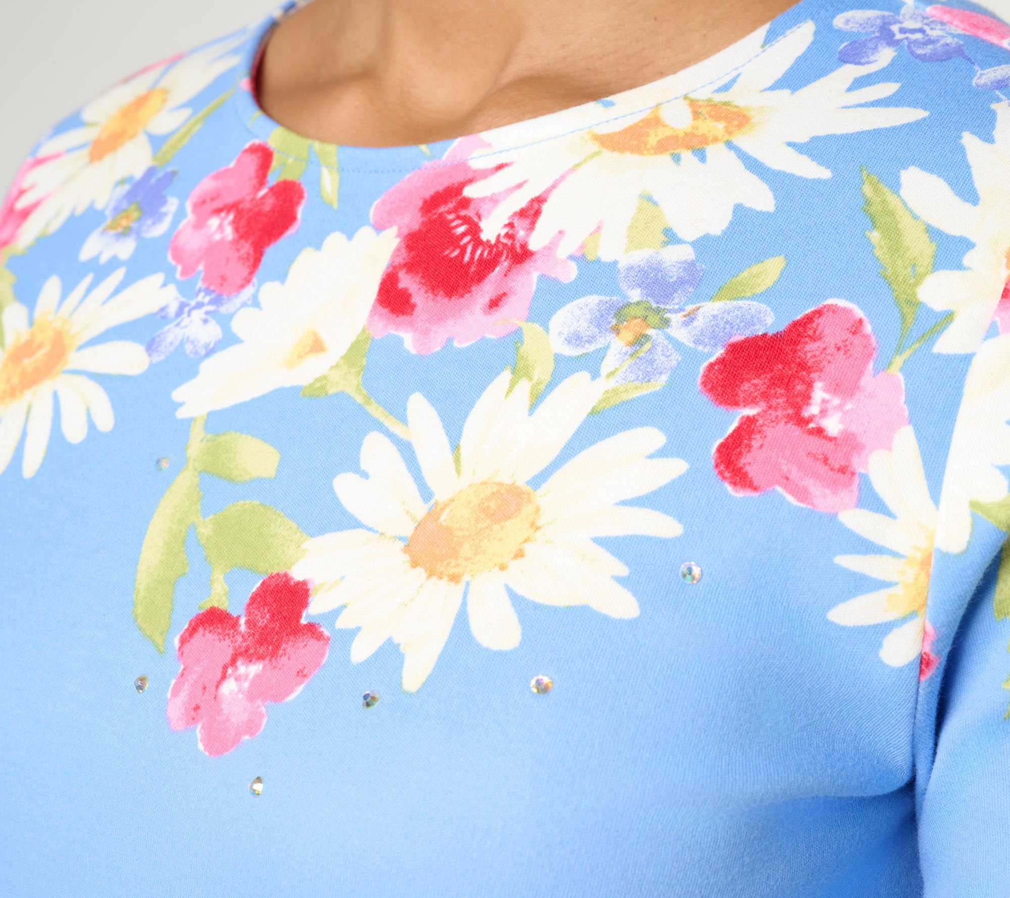 Crazy for daisies? Us too! Take your blooms to go with this vibrantly printed all-cotton top that's a breath of fresh air for your tee rotation. From Quacker Factory®.
