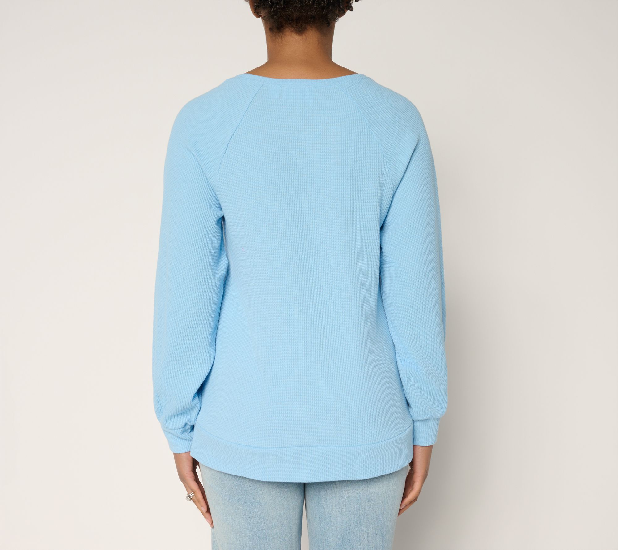 Bring cheer to your seasonal style with this playful waffle top, featuring glittering sequin trees and cozy long sleeves. The eye-catching motif adds a dose of holiday spirit, while the cotton-blend knit keeps things comfy whether you're heading out or lounging in. Pair it with leggings or jeans for a festive, feel-good look. From Quacker Factory®.