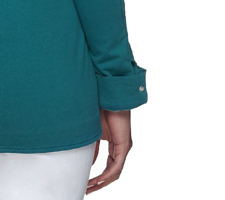 Turn up the fun factor with this jazzy jacket. Brought to life with animal rhinestone embellishments, its functional pockets, zip front, and long sleeves make it functional, too. From Quacker Factory(R).