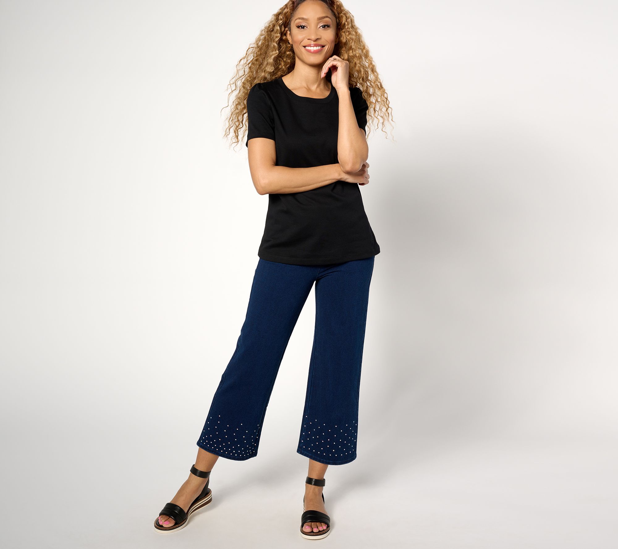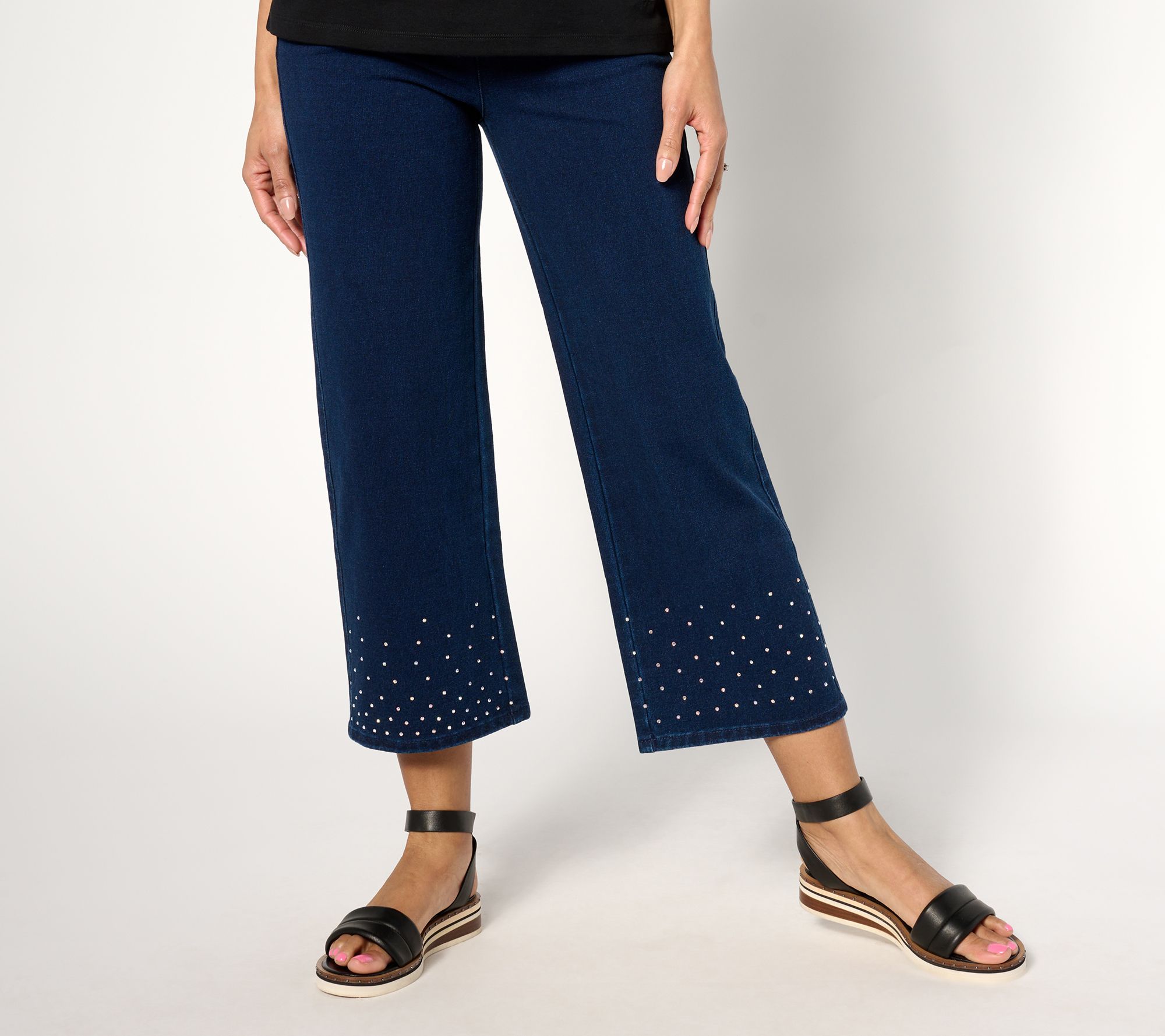 Give your look a sprinkling of sparkle and shine with these gaucho pants. The pull-on style makes them a comfortable and easy-to-love choice. From Quacker Factory®.